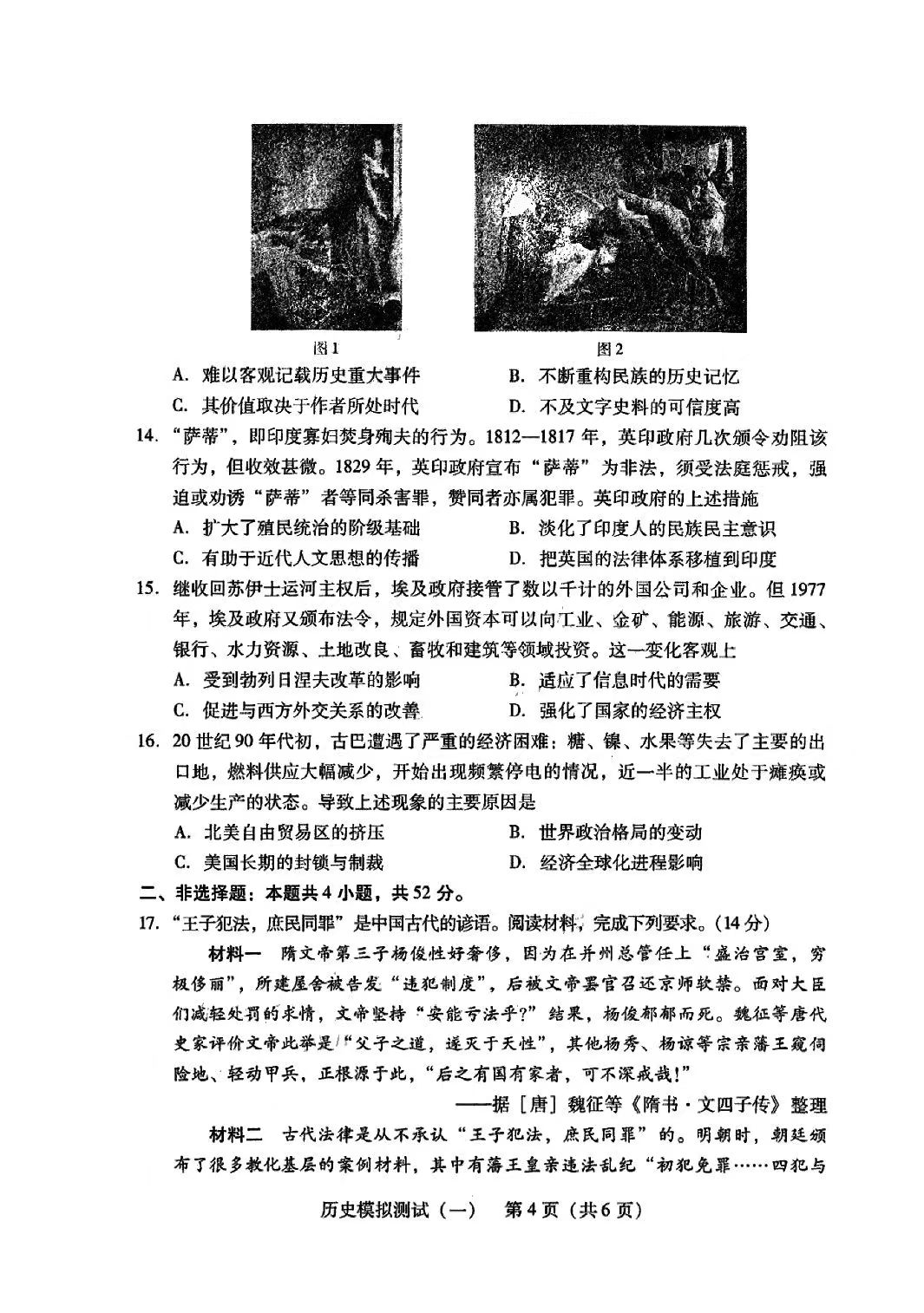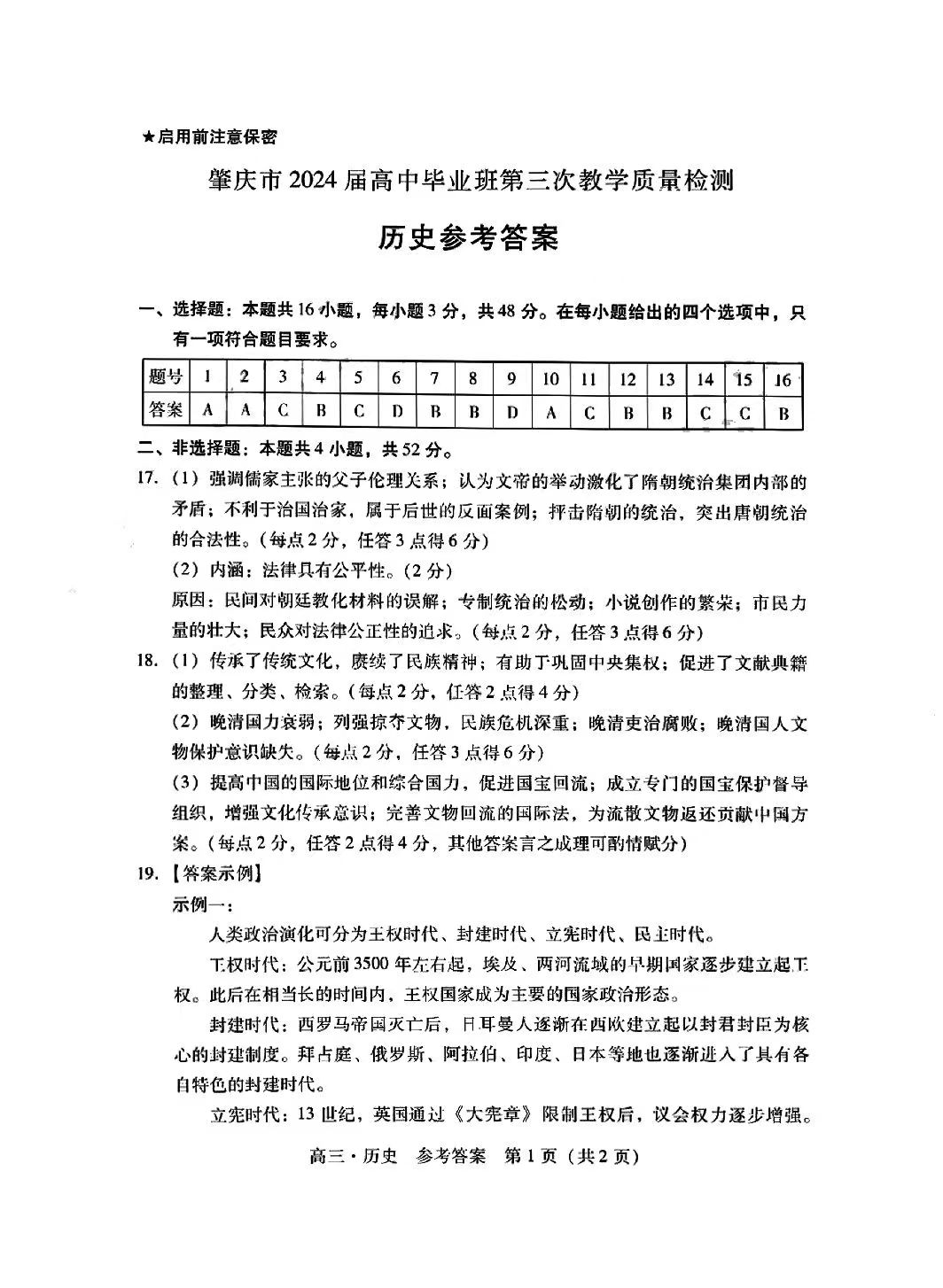 6.2024广东一模历史答案及试卷解析