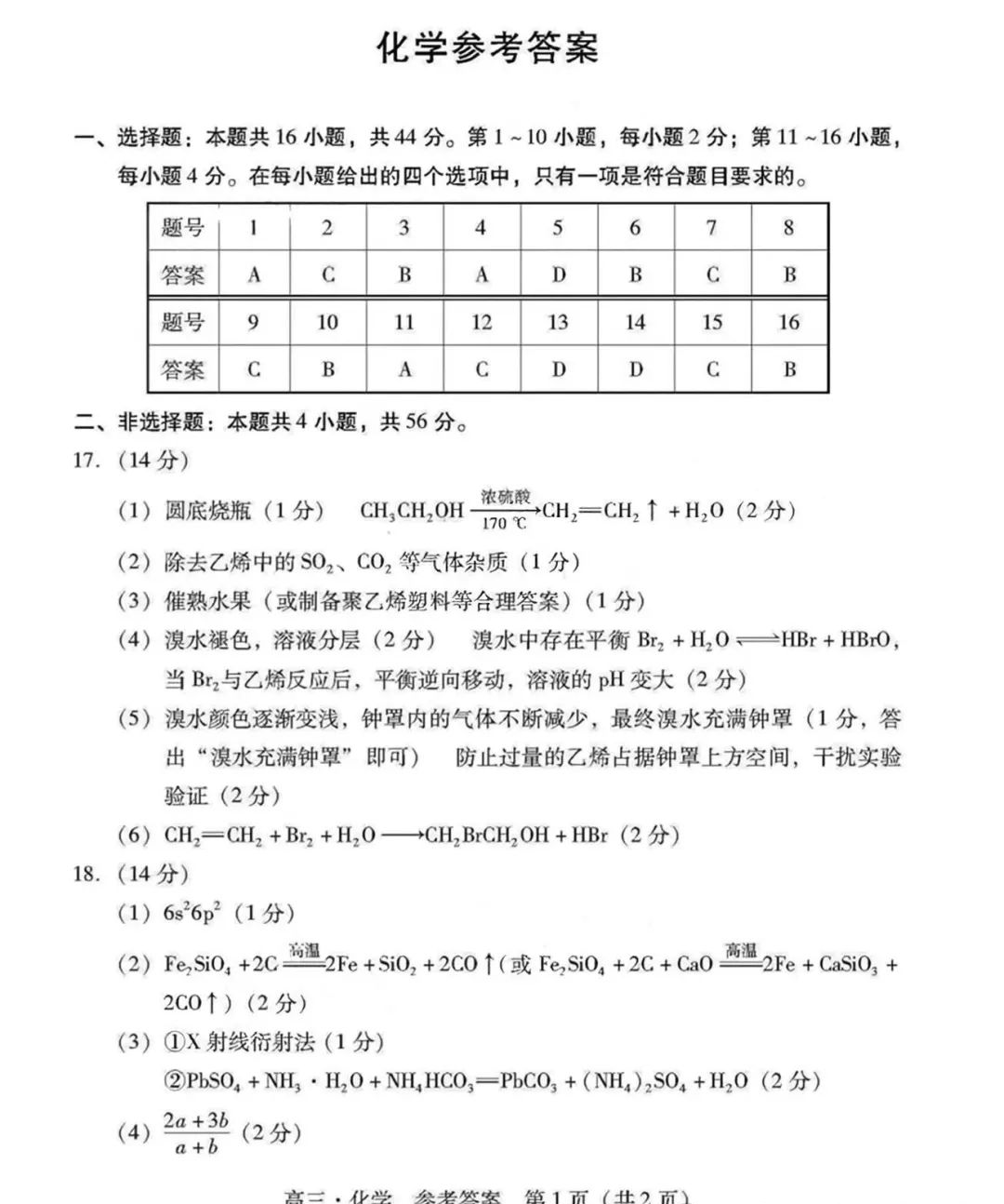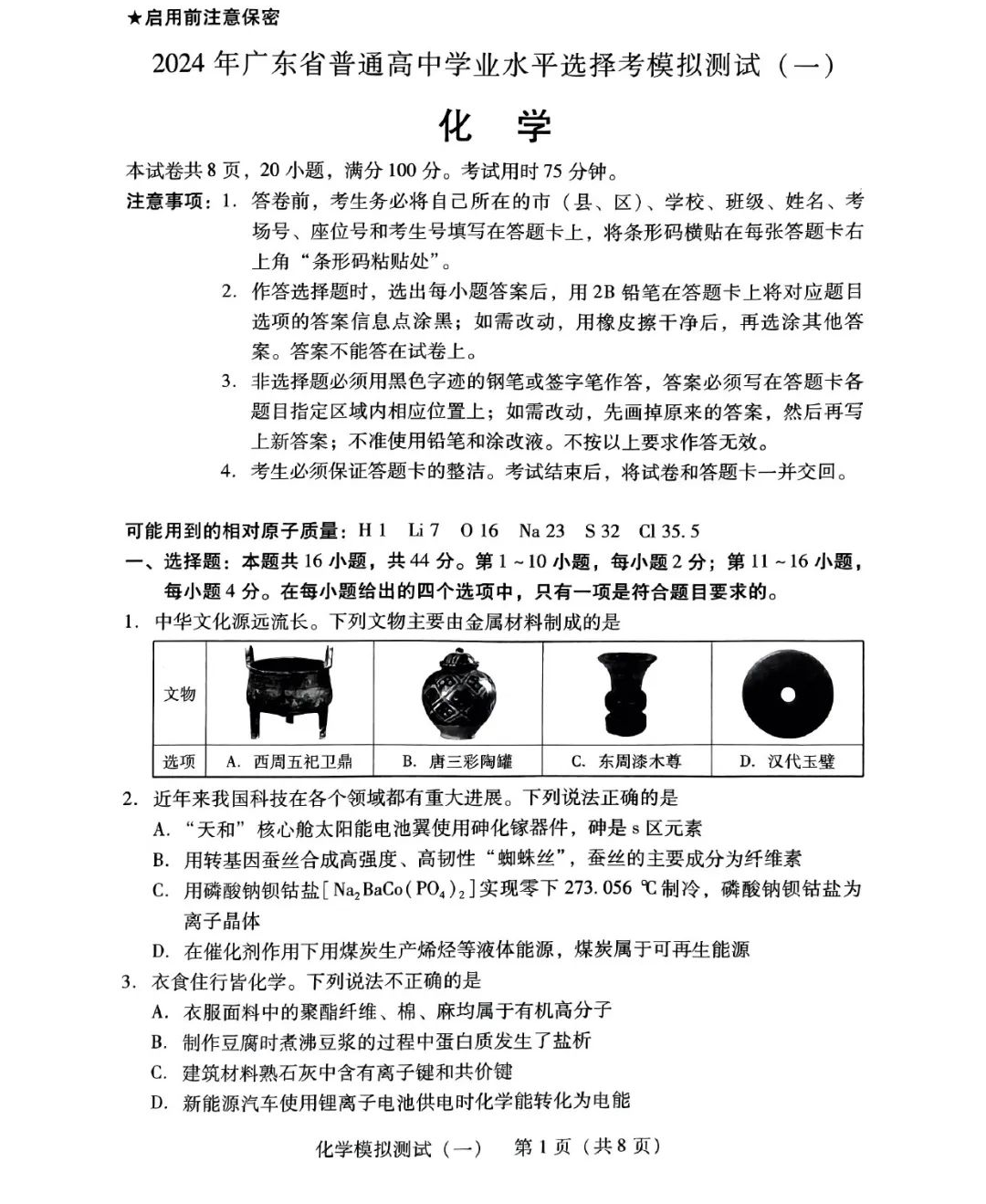 7.2024广东一模化学答案及试卷解析