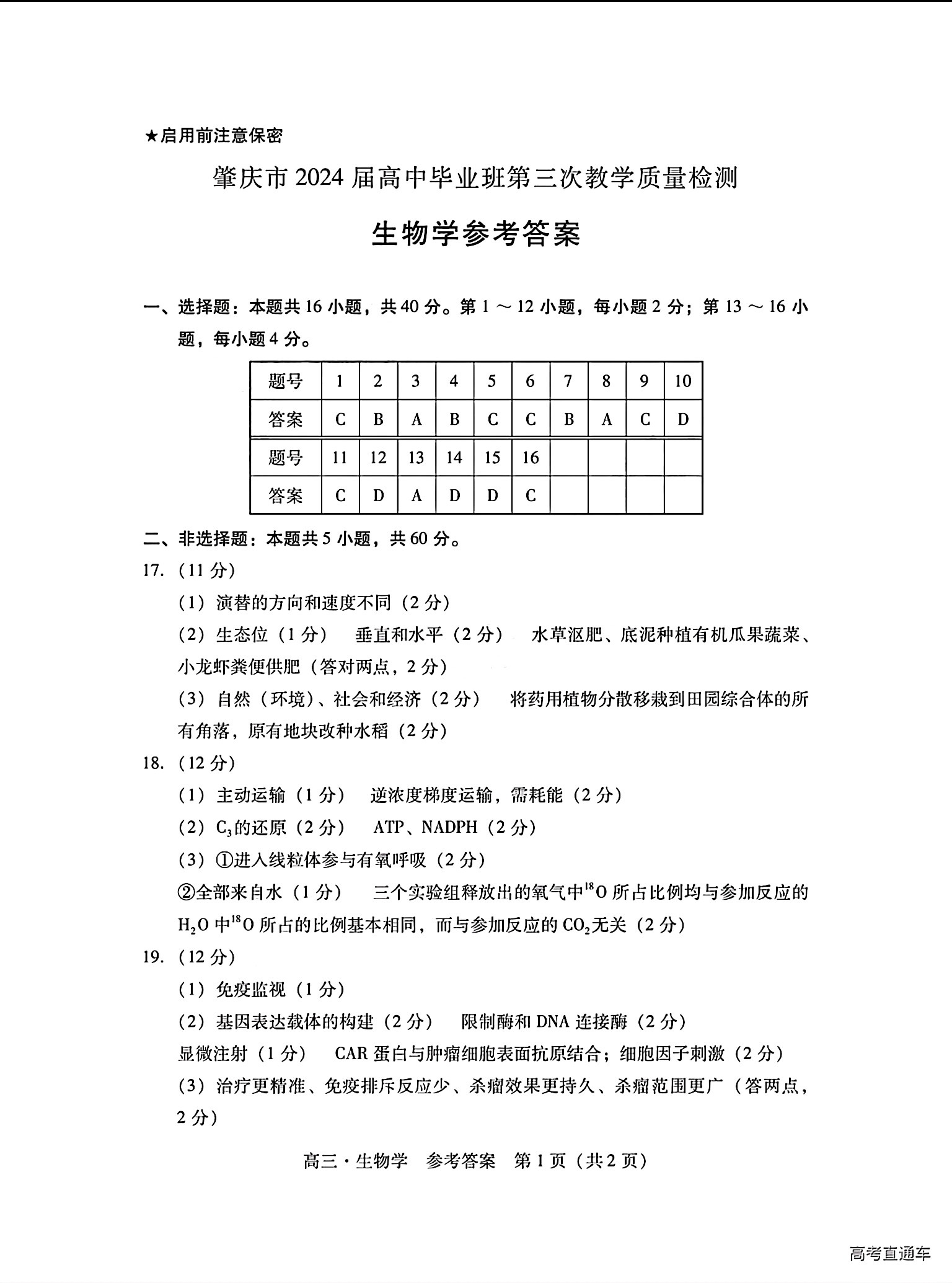 二、2024广东一模各科答案解析及试卷汇总