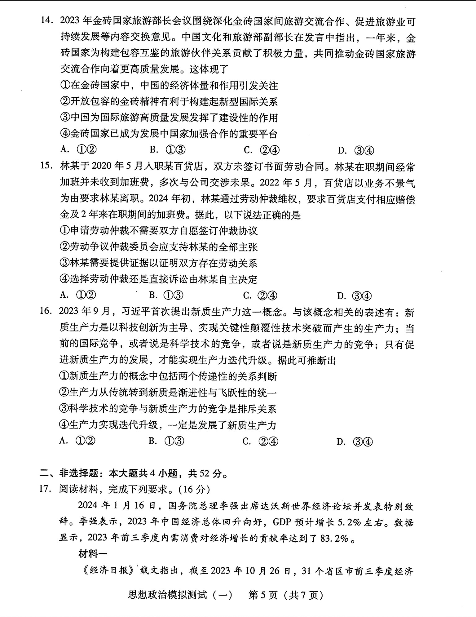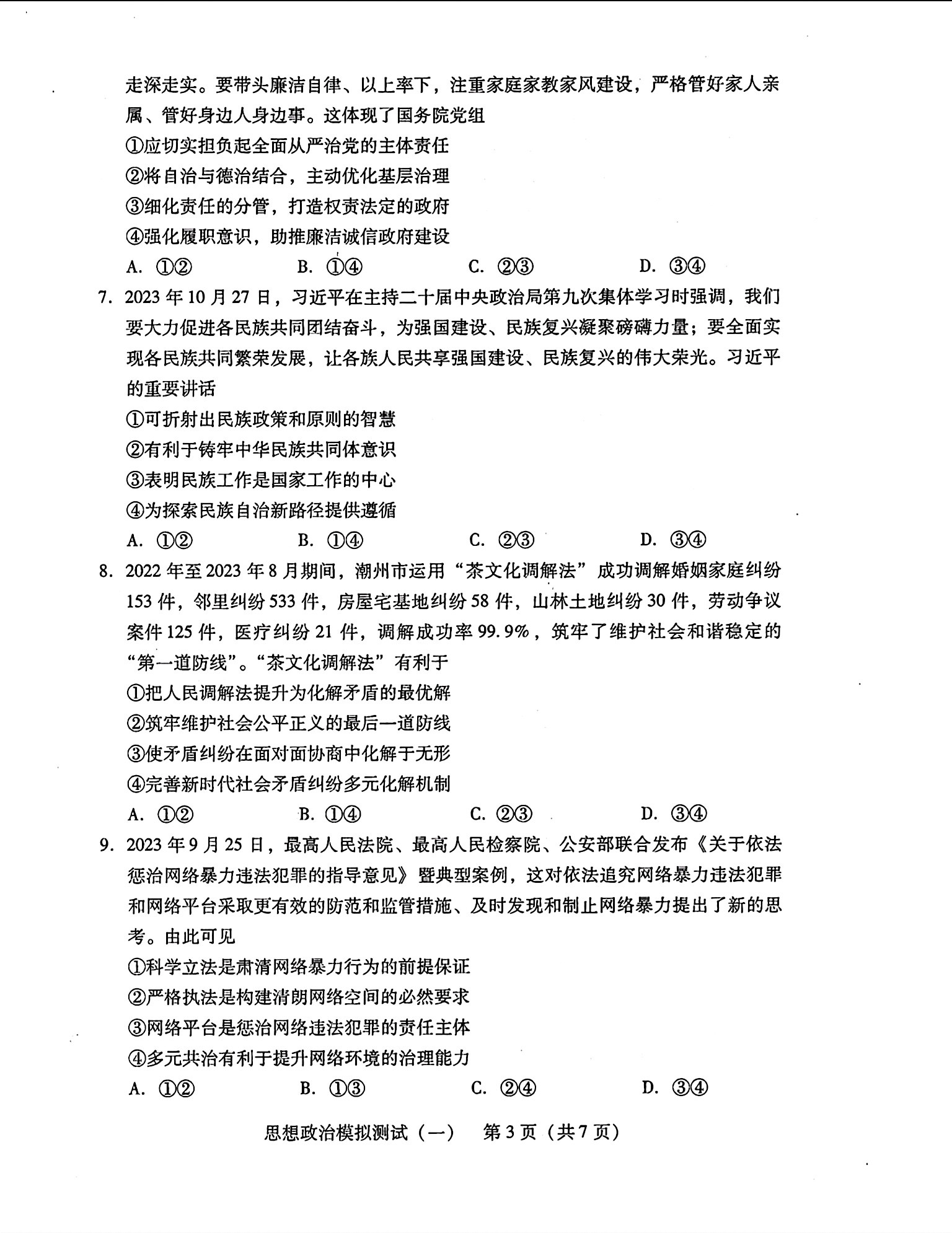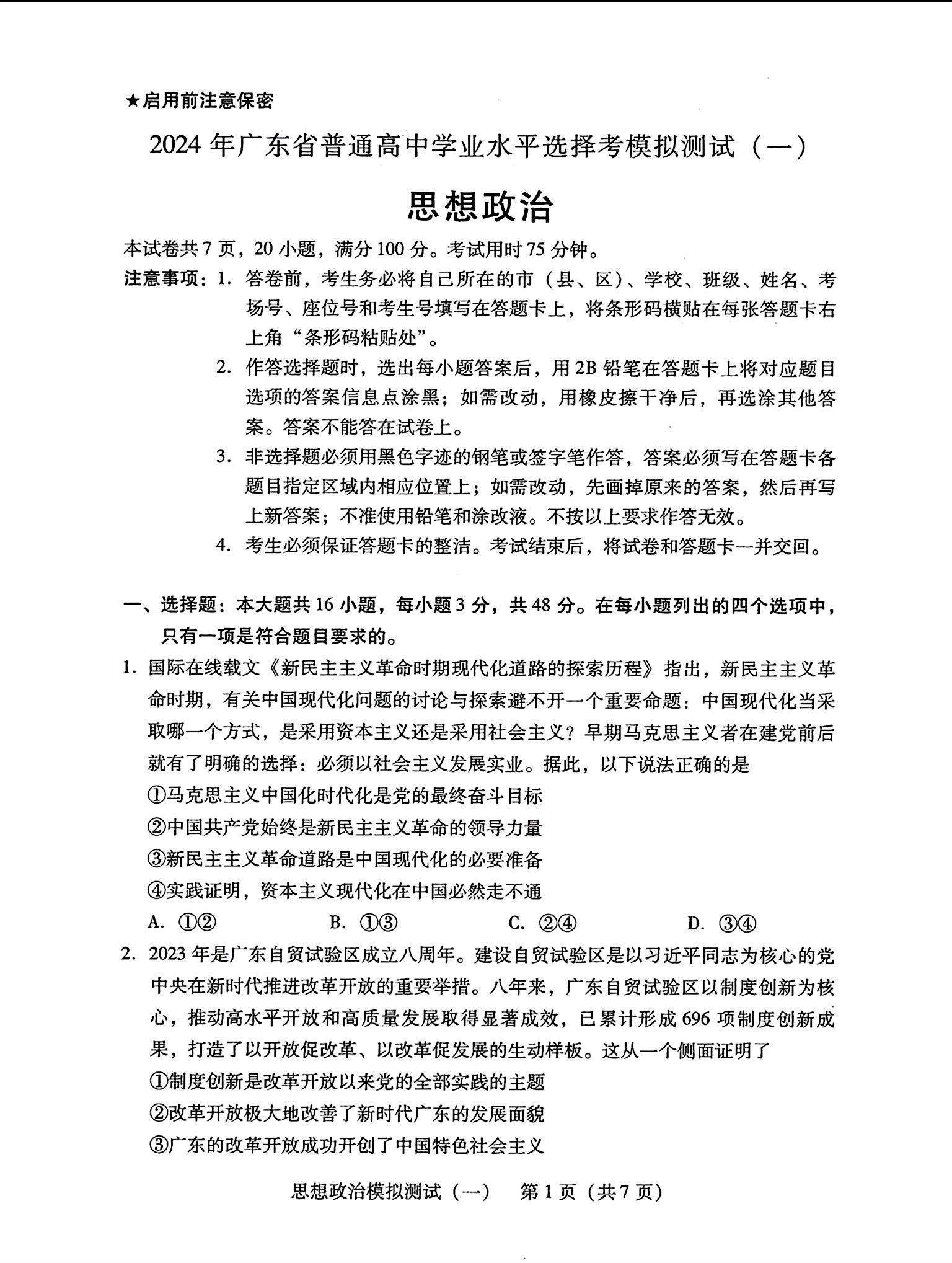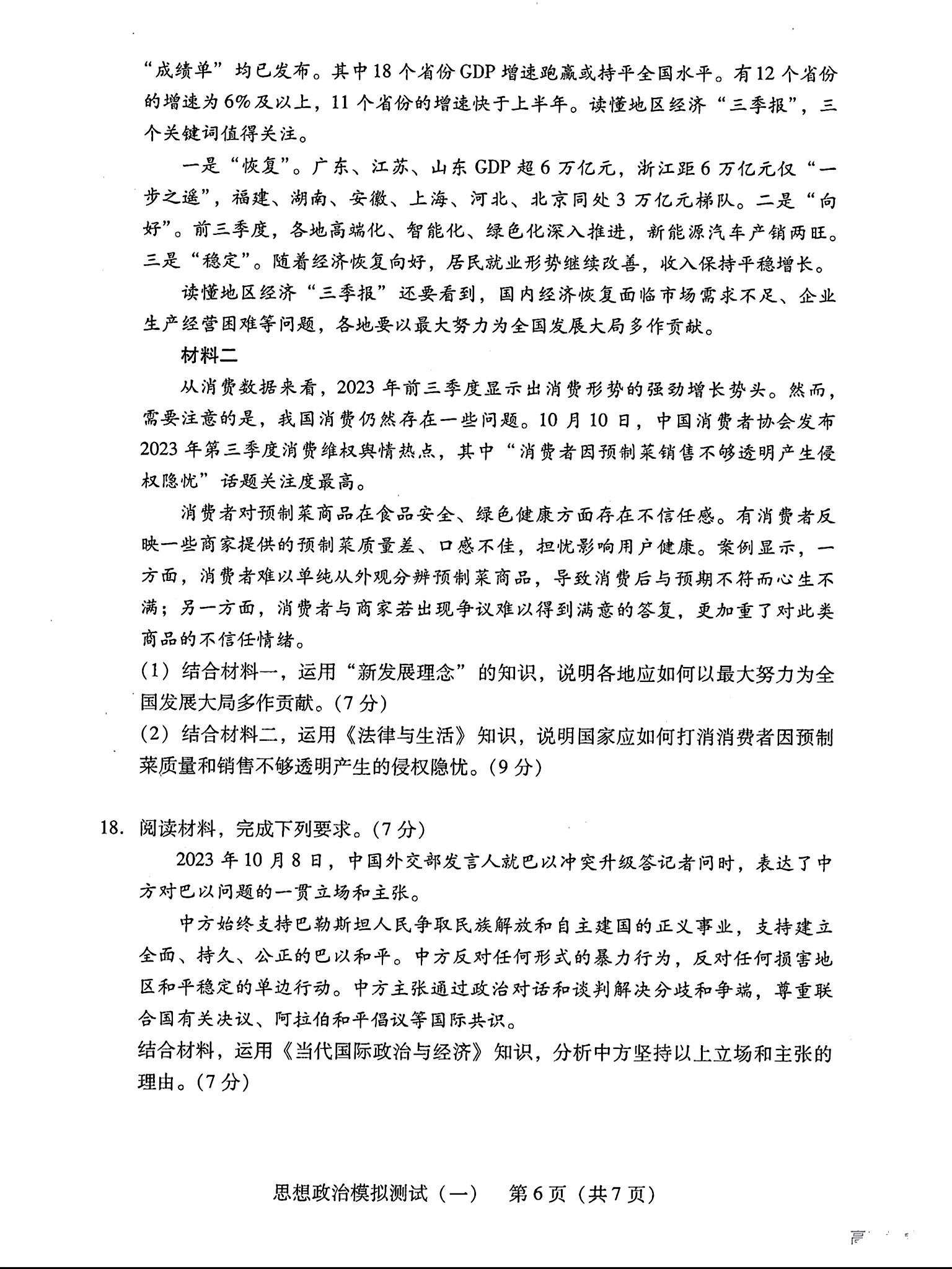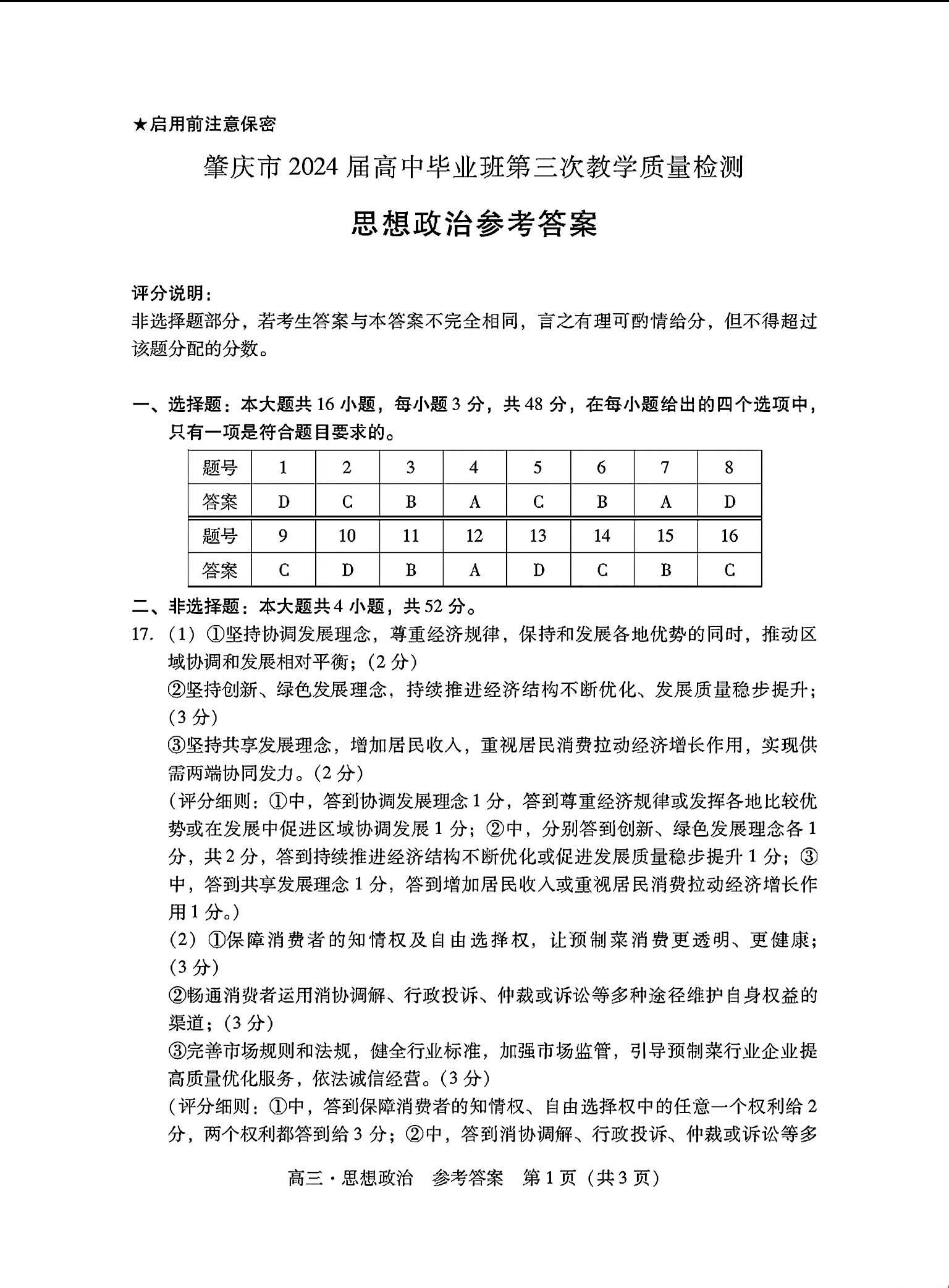 9.2024广东一模政治答案及试卷解析
