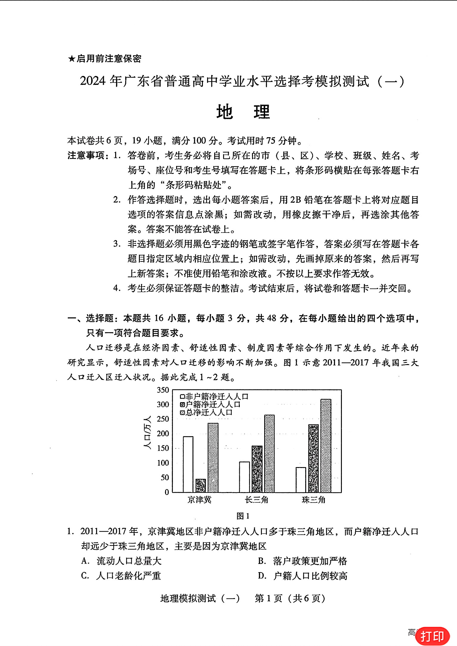 10.2024广东一模地理答案及试卷解析