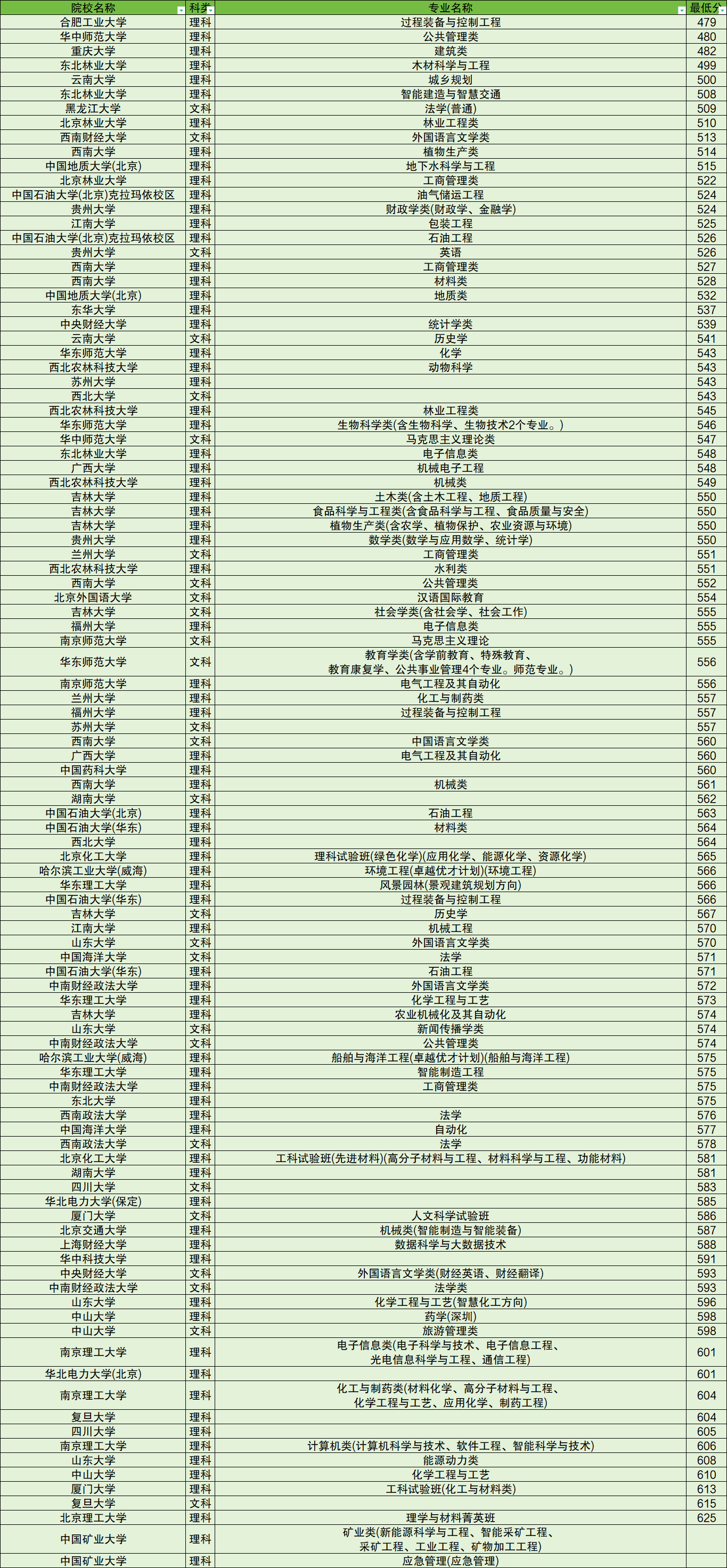 贵州大学:财政学类(财政学、金融学)524分、数学类(数学与应用数学、统计学)550分;