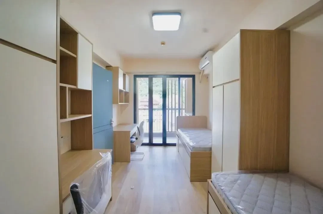 在WKU,有三种房型可供选择,分别是高端四人套间(两室一厅一卫)、温馨双人间(一室一卫)、豪华单人间(一室一卫)。梅兰竹菊四人套间足不出户拥有客厅私人小影院、微型游戏厅,沉浸式live house榕枫杏双人间全新的现代化装修、独立卫浴、自带席梦思的低床、大容量独立书桌和衣柜,带你完美诠释双人间定位。单人间在温肯,不回家也可以体验一个人的豪华单人间生活!无所顾忌为所欲为。大学宿舍的配套设施,除了每套房的独立卫浴,还能有什么呀?在WKU,那只是最基本的,我们还有24h热水和自由熄灯时间、WIFI和VPN网络全覆盖,智能门锁、空调设备、活动沙龙室、独立自习房、茶水间、公共洗衣房、公共厨房、健身房等等,满足你的一切需求。当然,在WKU每超过两层楼的建筑就有电梯,所以想走楼梯的这个愿望可能很难实现。