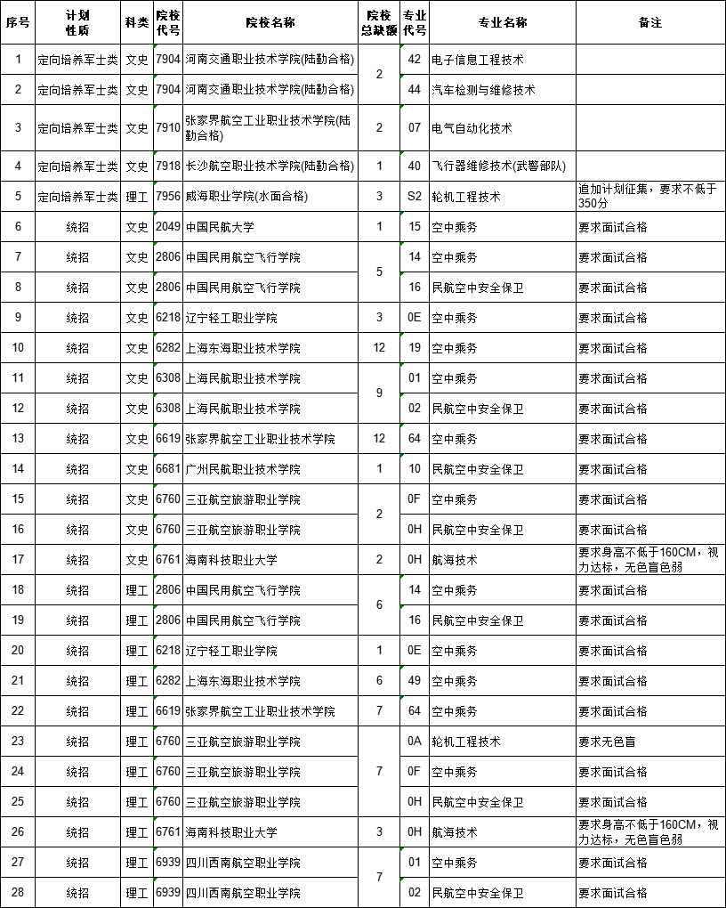2023年江西专科提前批征集志愿院校有河南交通职业技术学院、张家界交通职业技术学院、张家界航空工业职业技术学院、长沙航空职业技术学院、威海职业学院、中国民航大学、中国民用航空飞行学院、辽宁轻工职业学院、上海东海职业技术学院、上海民航职业技术学院、广州民航职业技术学院、三亚航空旅游职业学院、海南科技职业大学等院校;具体征集志愿院校名单见下表: