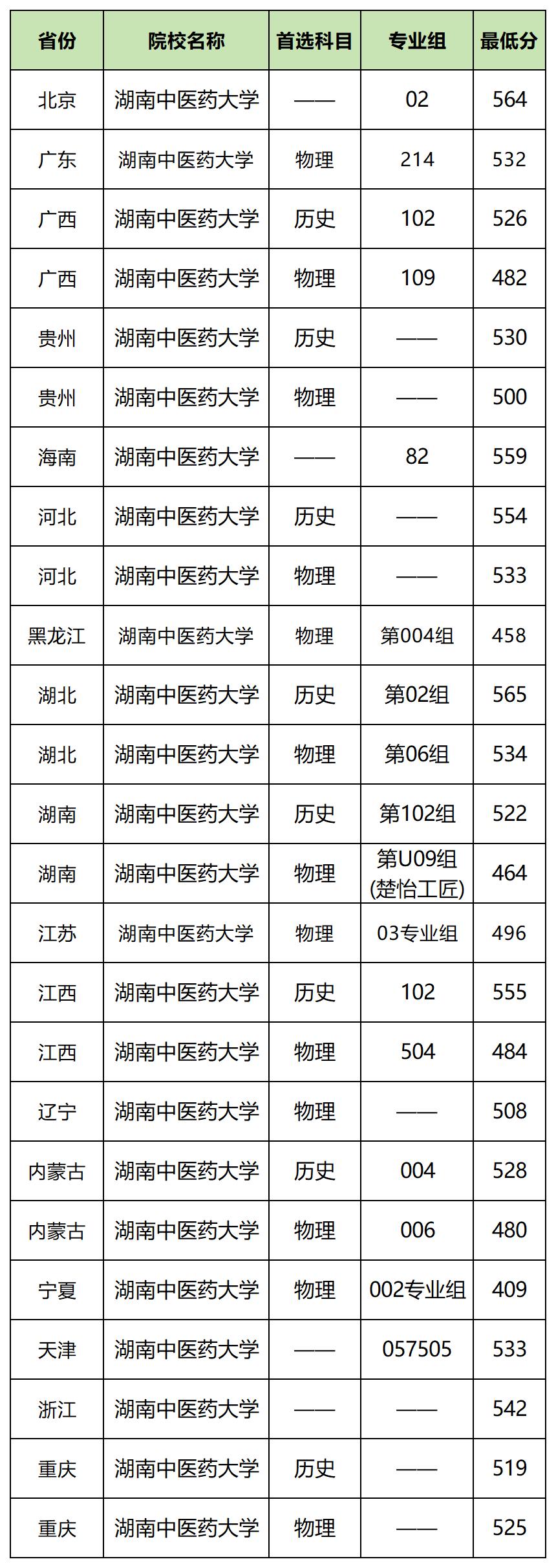 2025年湖南中医药大学在广东招生最低分为532分(物理类);