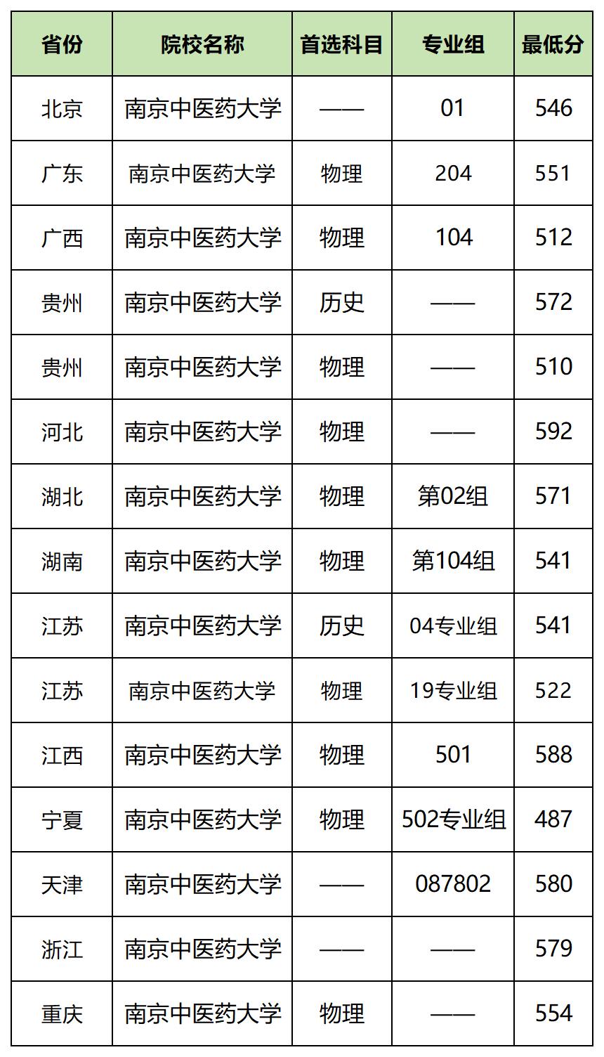 2025年南京中医药大学在广东招生最低分为551分(物理类);