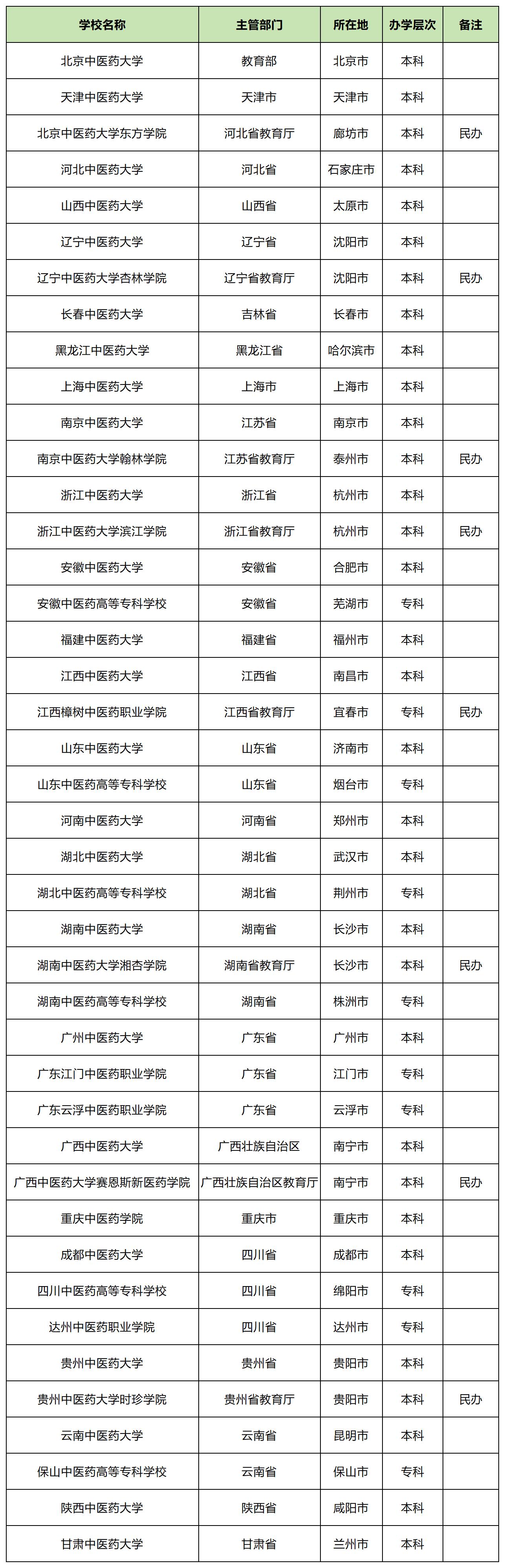 下面是2025年42所中医药招生院校名单: