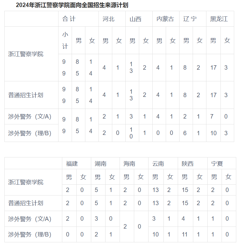 浙江警察学院招生简章已公布,2024招生计划99人,其中河北5人,招生专业包括侦查学、治安学、经济犯罪侦查、公安情报学、刑事科学技术、交通管理工程、网络安全与执法等。