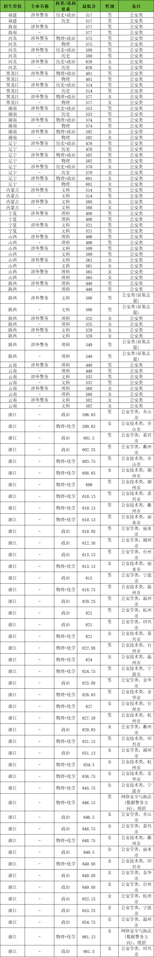 下面是2024年浙江警察学院在全国录取分数线一览表: