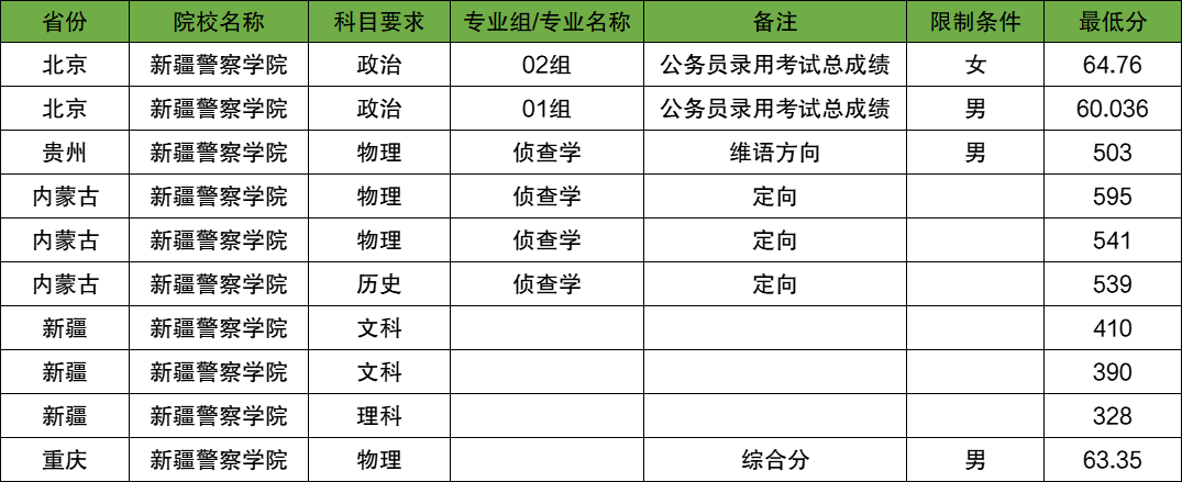 新疆警察学院,2025年理科投档最低328分。
