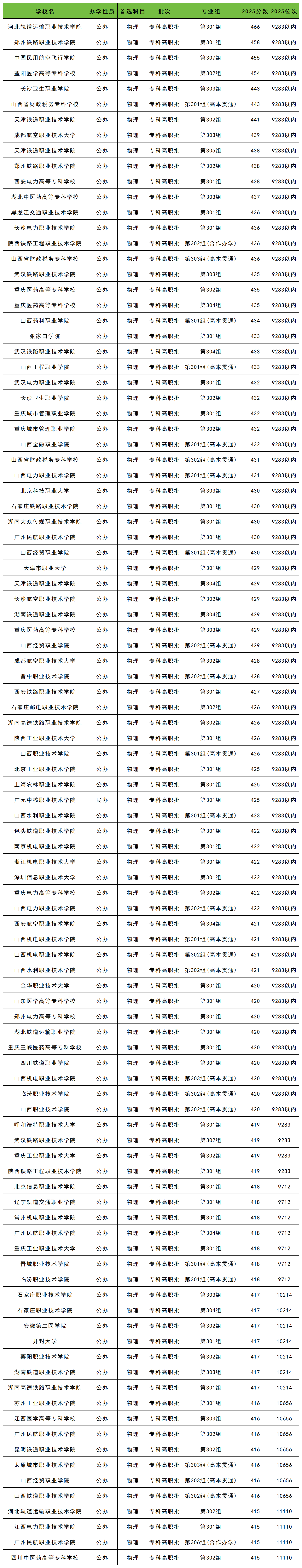 专科批大学中分数线最高的是河北轨道运输职业技术学院301组(466分),另外分数线较高的还有郑州铁路职业技术学院301组(458分)、中国民用航空飞行学院307组(455分)、益阳医学高等专科学校302组(454分)。