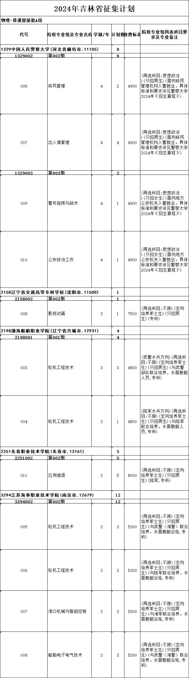 以下为2024年提前批A段院校征集志愿计划院校名单及招生计划和要求: