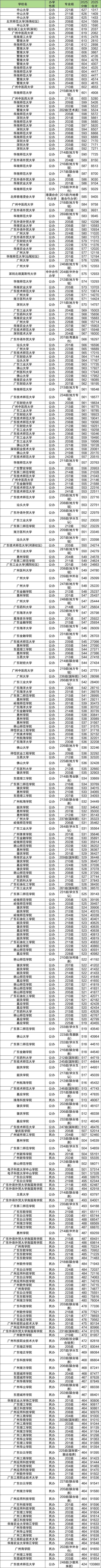 意味着对于广东首选历史的同学来说,2026年需排在13万名左右才有机会上省内本科大学。下面为2025年广东各大学历史类录取最低位次展示:
