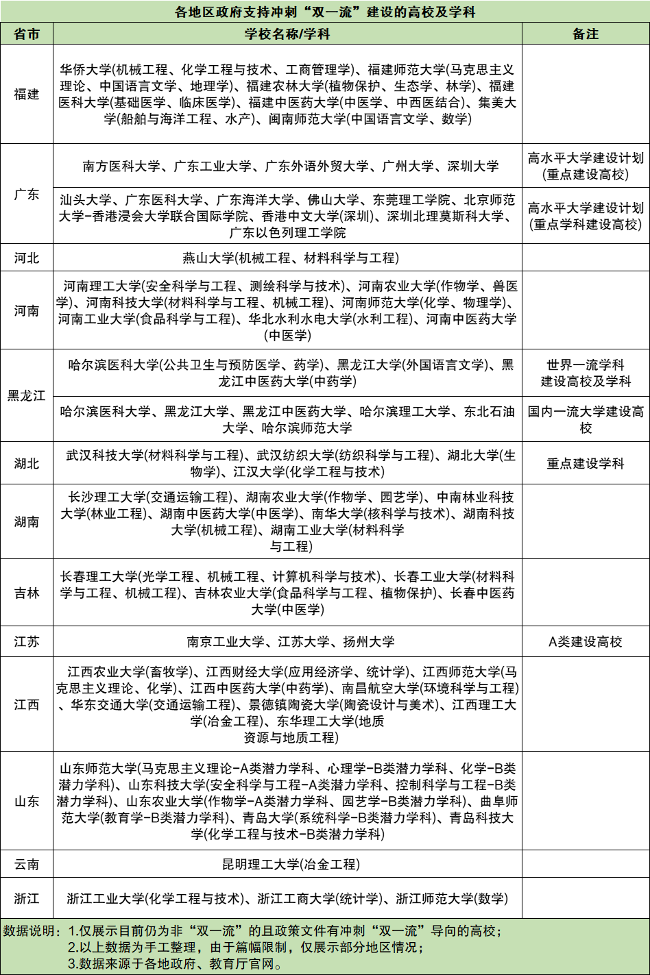第一轮、第二轮双一流建设工作实施的非常顺利,为跟上国内高校的建设教育规划,各地教育部门已经明确制定了冲刺第三轮双一流的建设的高校,具体如下: