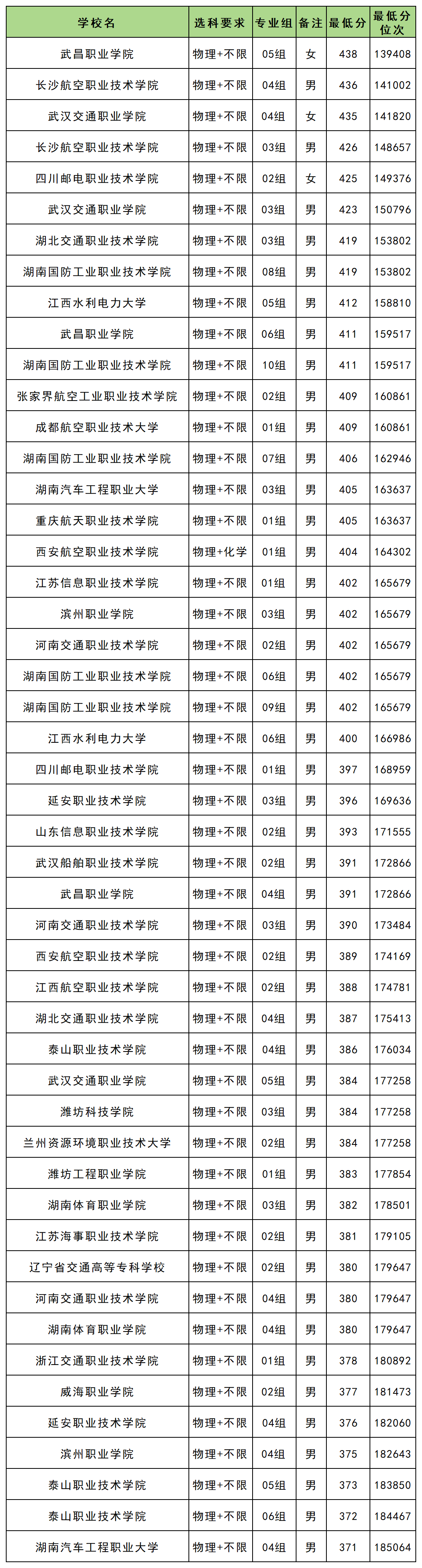 我们也为大家整理其他在湖北物理类招生的士官学校分数线: