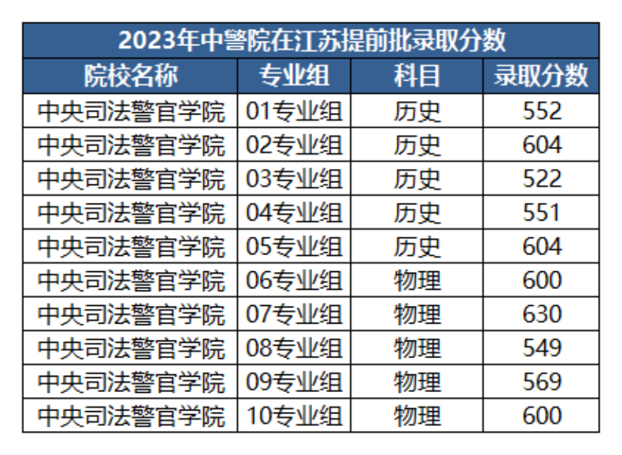 以下是2023年中央司法警官学院在各省份录取分数的详情,供大家参考。