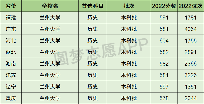 4、兰州大学在3+1+2新高考省份【首选历史】的招录数据,招生批次为本科批: