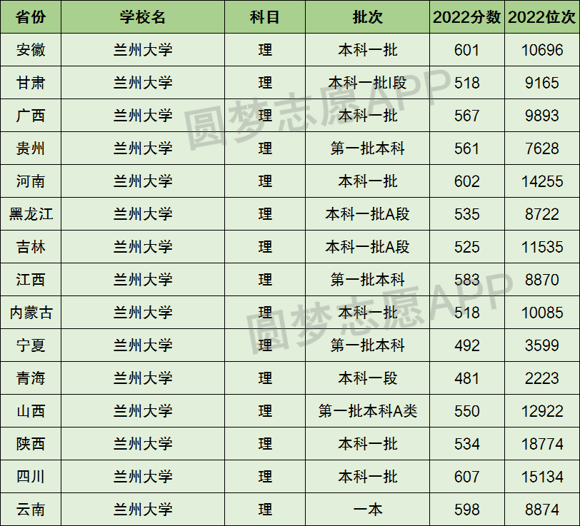 2、兰州大学在全国普通高考省份的【理科】招录数据,包含招生批次等信息: