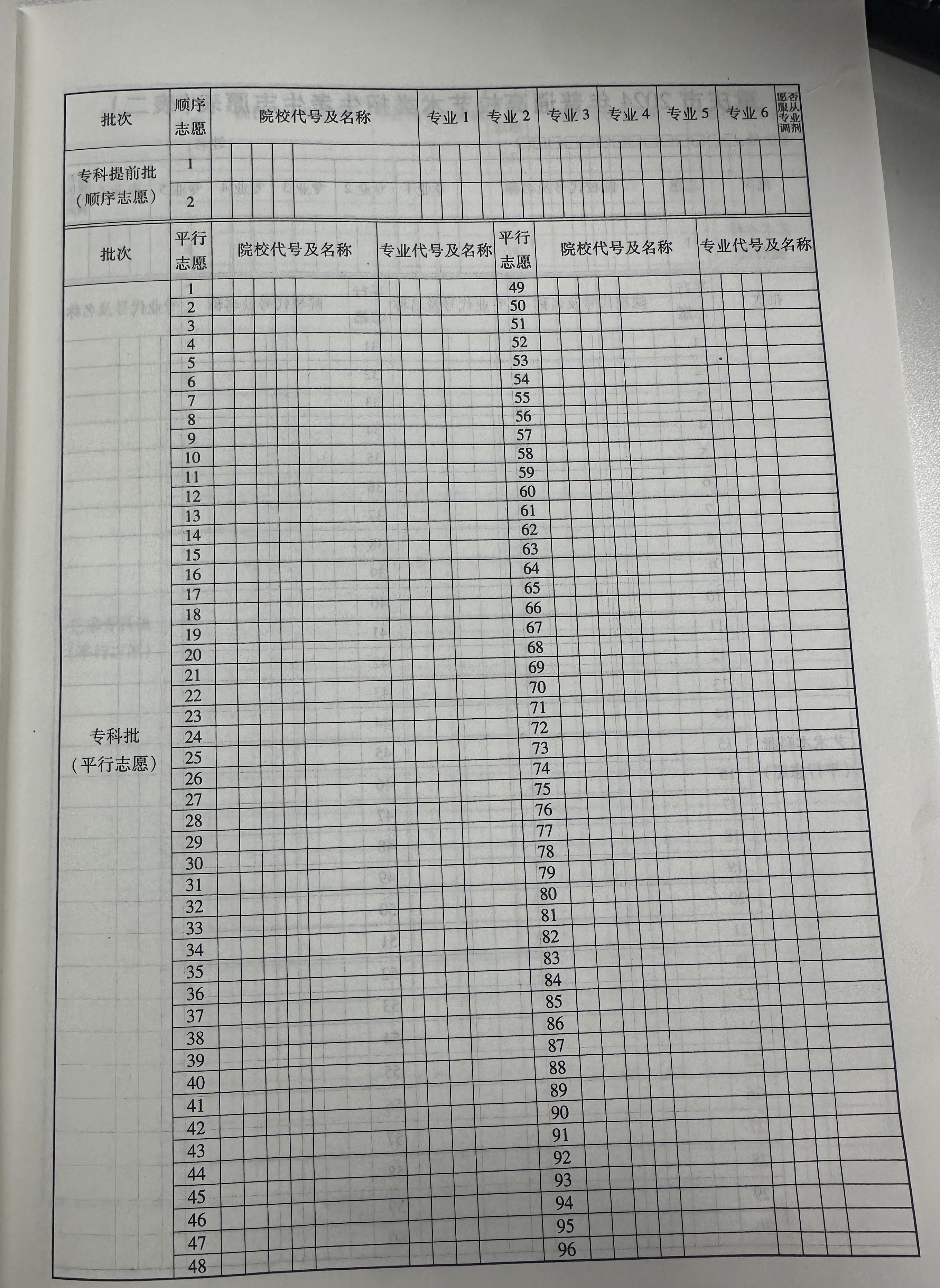 2024年重庆市高职(专科)批设置96个专业平行志愿,可参考以下志愿表格。