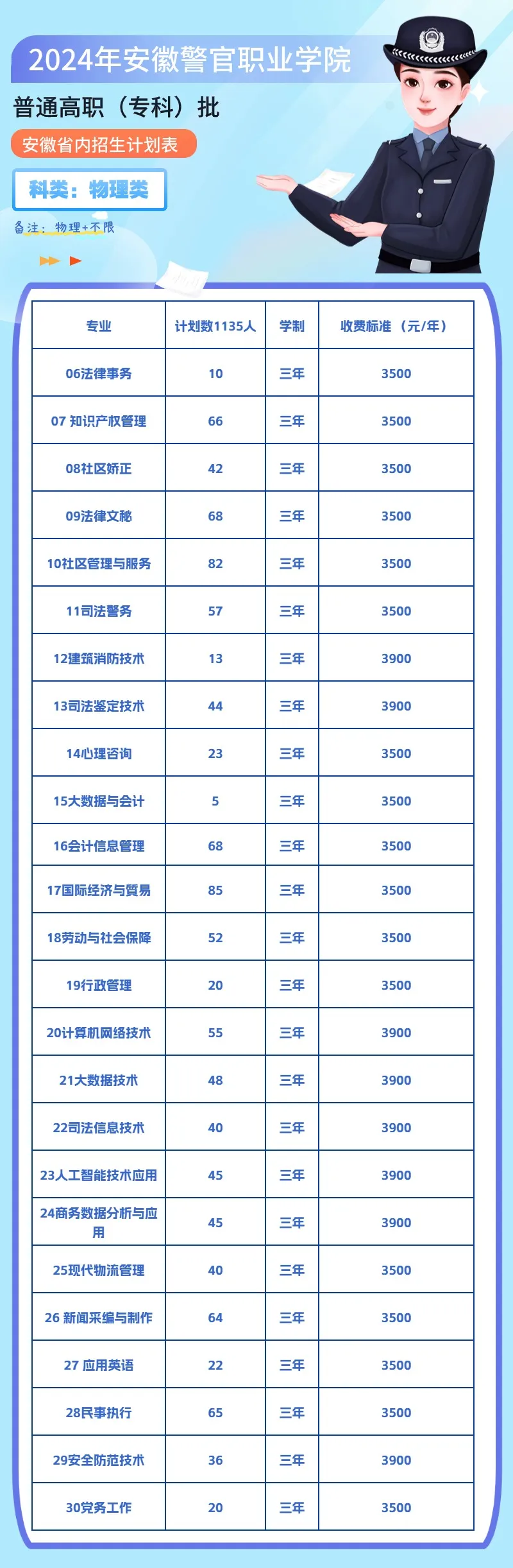 同时本文也整理出2024年安徽警官职业学院的详细招生计划,供2025年考生参考。