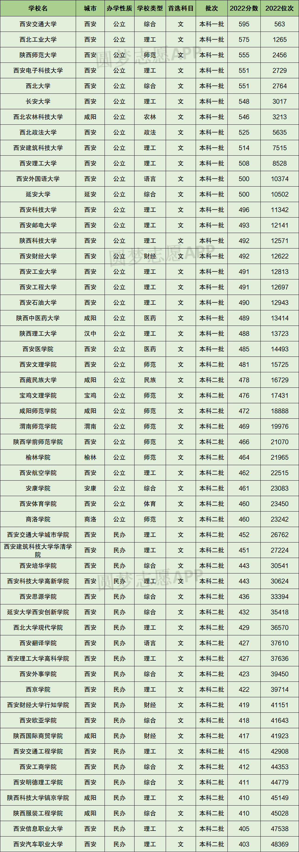 二、2022年陕西省文科本科大学分数线及位次