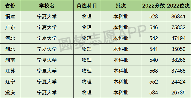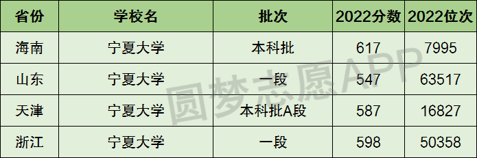 下面圆梦志愿将为大家展示宁夏大学2022年在全国各省市的最低分数线和位次,大家可以在了解宁夏大学在全国各省详细招生批次的同时,也顺便看看宁夏大学的招生录取分数线是多少!