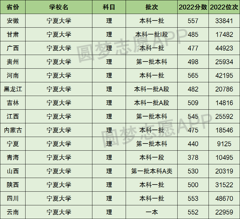 2、宁夏大学在全国普通高考省份的【理科】招录数据,包含招生批次等信息:
