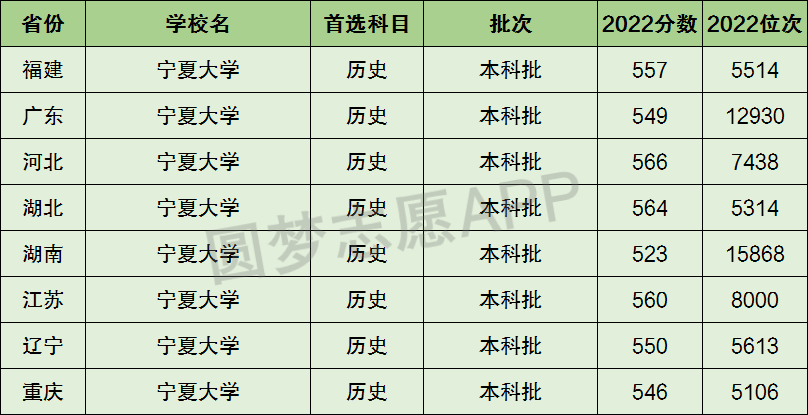 4、宁夏大学在3+1+2新高考省份【首选历史】的招录数据,招生批次为本科批: