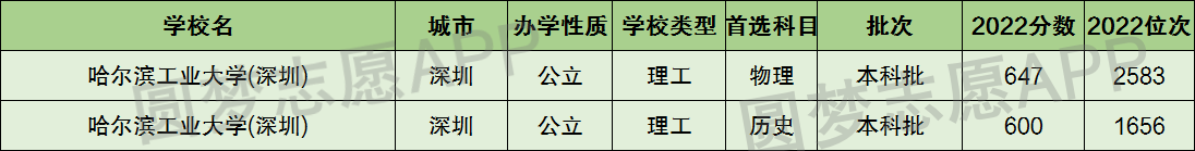 1、 哈尔滨工业大学(深圳) : 物理类最低分为 647 、 历史类最低分为 600