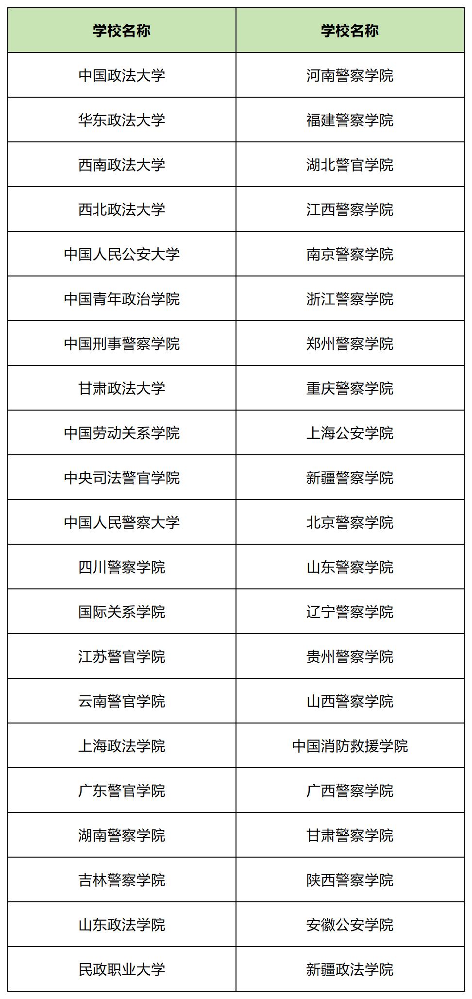 下面是2025年42所政法类招生院校名单: