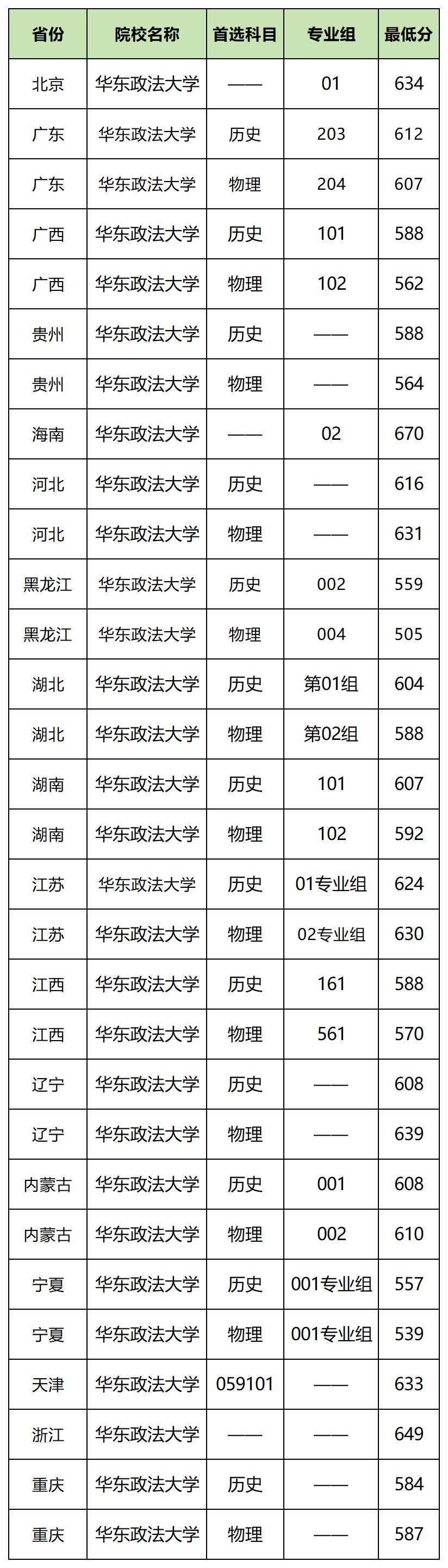 2025年华东政法大学在重庆招生最低分为584分(历史类);