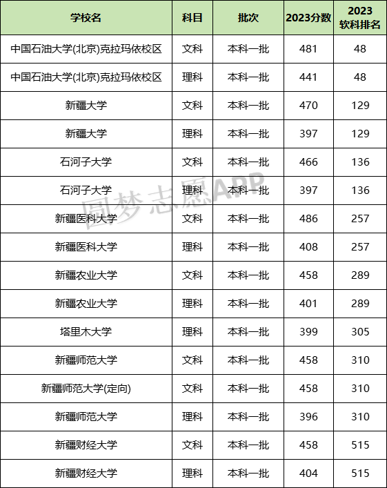下表为2023年新疆维吾尔自治区各一本大学的排名和录取分数,各位可以在圆梦志愿app测评被新疆各大学的录取概率。