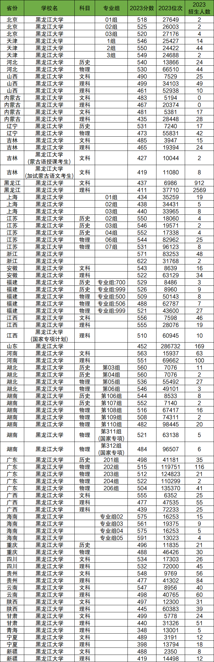 2023年黑龙江大学在全国各省均有招生,以下将介绍黑龙江大学在各省的高考招生人数,以及招生专业,最低分数线等内容。