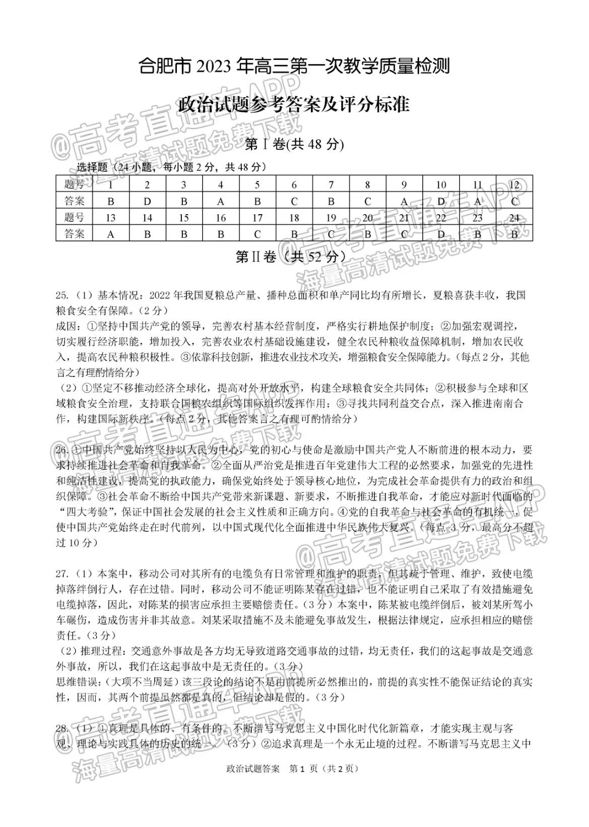 2023合肥一模是合肥市高三的第一次模拟考,对于合肥高三考生来说很重要。2023合肥一模将于2月11日开考。在合肥一模的各科考试结束后,高考100网将会整理合肥一模文综试卷及答案2023汇总,供参考。合肥一模2023俗称“小高考”,对于同学们后期的复习方向、自信心的建立有着重要的影响,祝同学们在此次考试中都能取得不错的成绩!