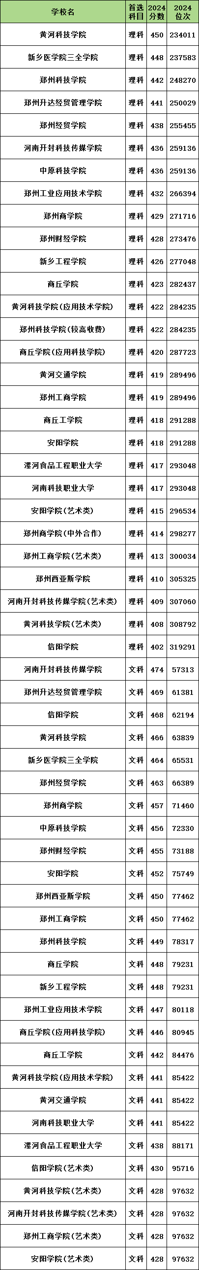 2024年河南省所有公办二本录取分数线一览表如下,数据较多,可滑动查看: