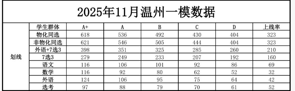 下面是2026届温州一模分数线:
