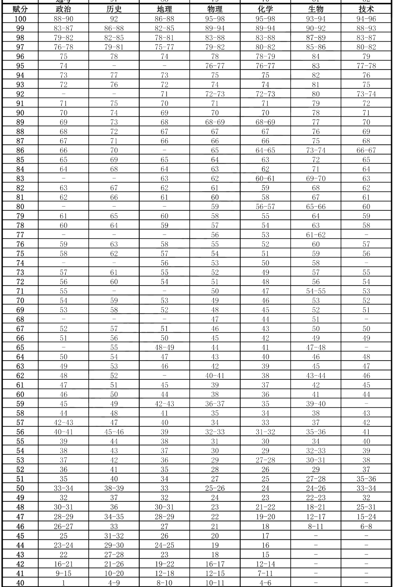 赋分区间:在21个等级基础上优化为20个区间,第1区间为100-97分,第2区间为96-94分,依此类推,第20区间为42-40分。