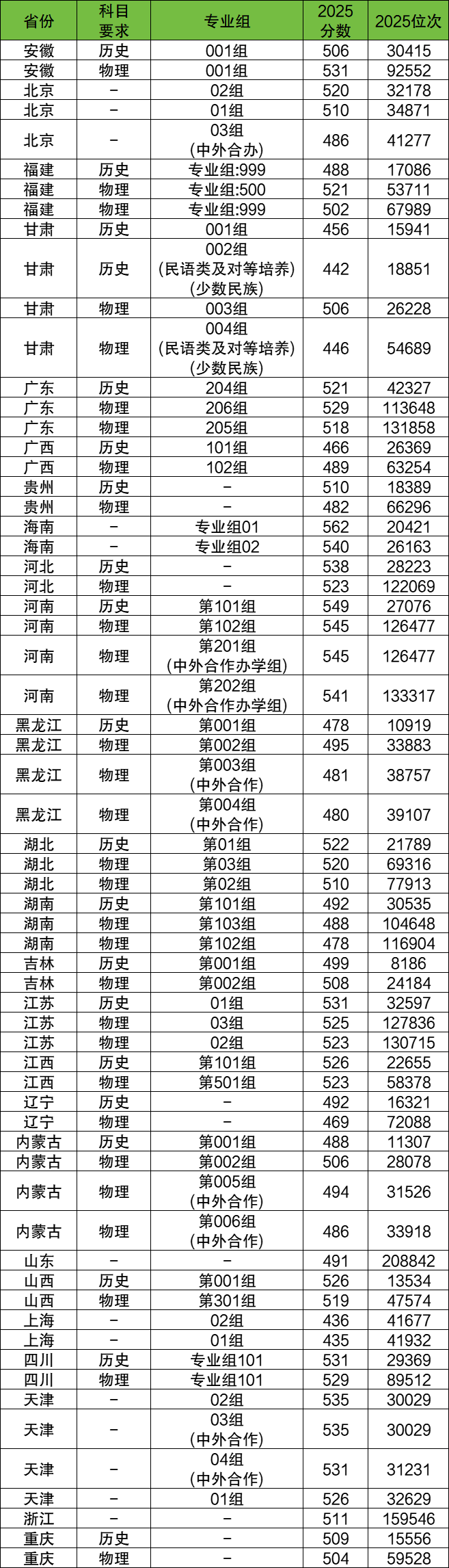 以下是原校2025年录取分数线(考生可结合原校数据进一步参考专业热度分布):
