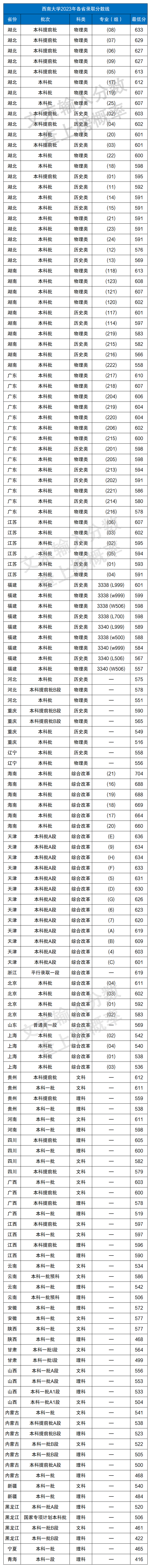 下面是该校2023年在各省的录取分数情况:(图片可滑动查看)
