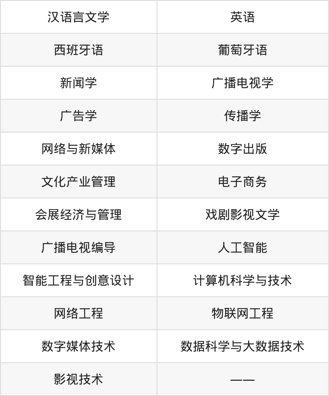 根据2025年河北高考招生计划可知,河北传媒学院招生专业包含汉语言文学、英语、西班牙语等,完整版名单如下。
