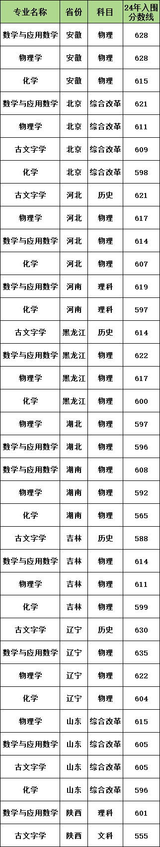 下面是2024年吉林大学强基计划各省各专业入围分数线一览表:
