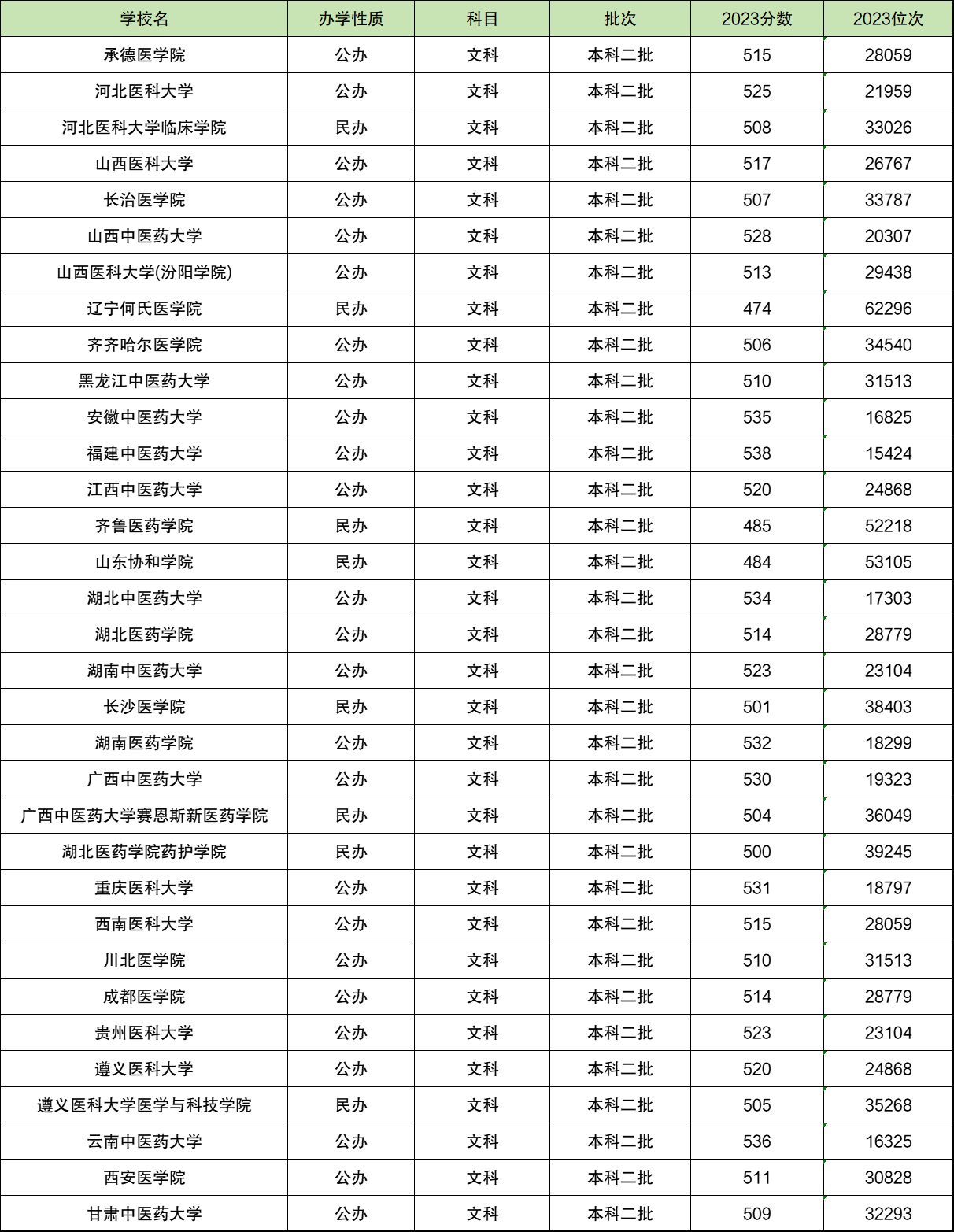 根据四川文科数据,二本护理专业的医科大学有承德医学院、河北医科大学、河北医科大学临床学院、山西医科大学、长治医学院等33所,具体名单及院校在二本批次的最低分如下: