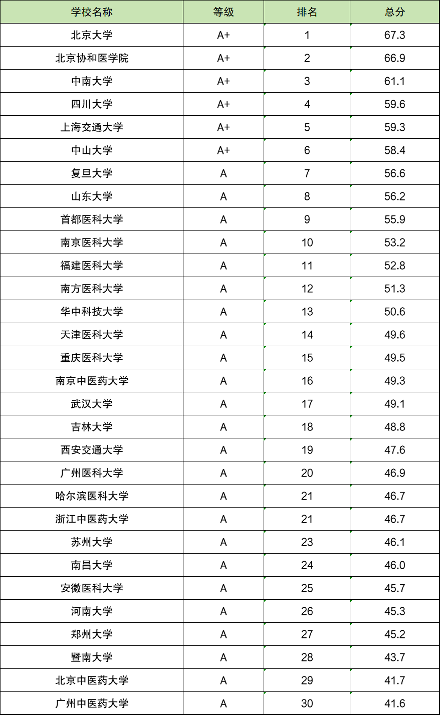 不过由于护理学专业本科大学数量较多,参与了排名的院校共有155所,所以本文只能从中选取排名前30强的院校名单,供大家参考。