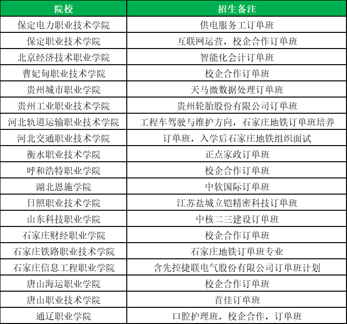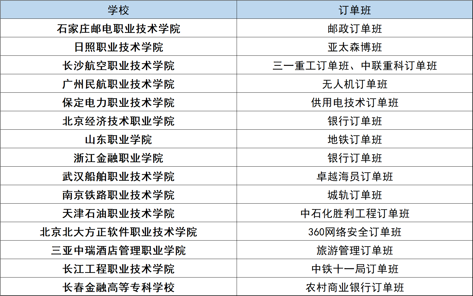 开设专科订单班的学校有石家庄邮电职业技术学院、山东职业学院、保定电力职业技术学院等。订单班的学生毕业后可以直接到合作企业工作,相当于毕业包分配。接下来,小编将给大家推荐几所学校的订单班供选择。