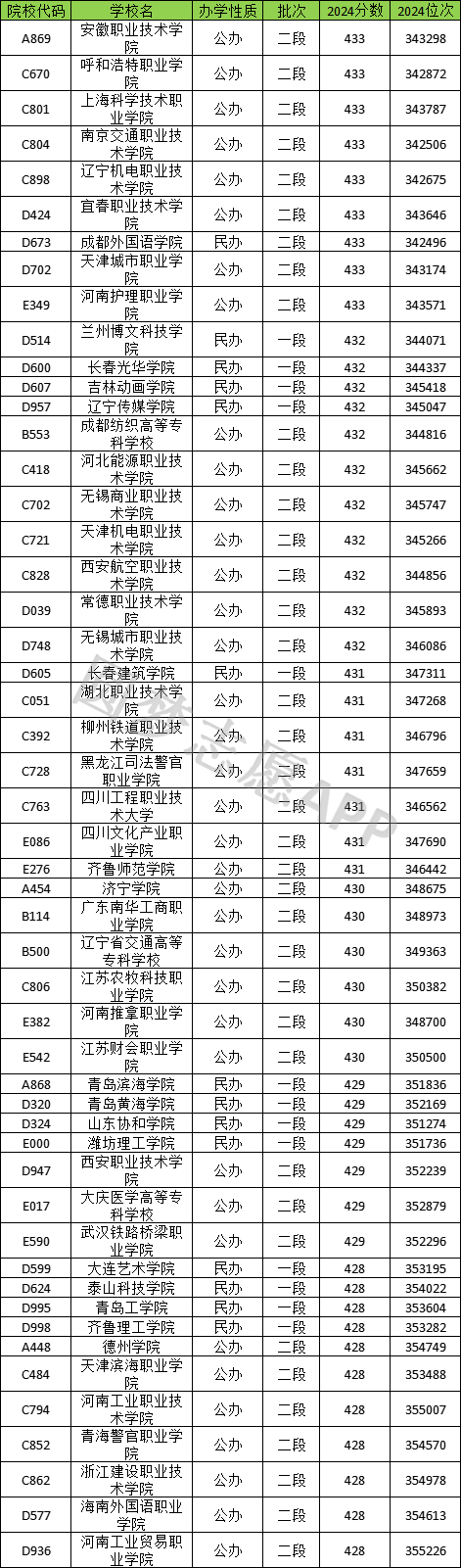 高考430分左右能上的公办大学有辽宁机电职业技术学院、湖北职业技术学院等;本文将介绍2024年多个省份430分左右能上的大学名单,供2025年考生参考。