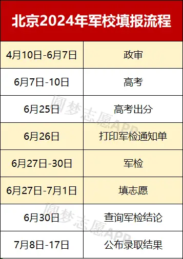 2025年北京军校报考流程主要包括填报志愿(6月27日-7月1日)、政审(4月10日-6月7日)、军检(6月27日-30日)等。想要报考军校需要满足年龄16到20岁、符合军队院校体检标准等条件。完整流程及时间安排表如下。