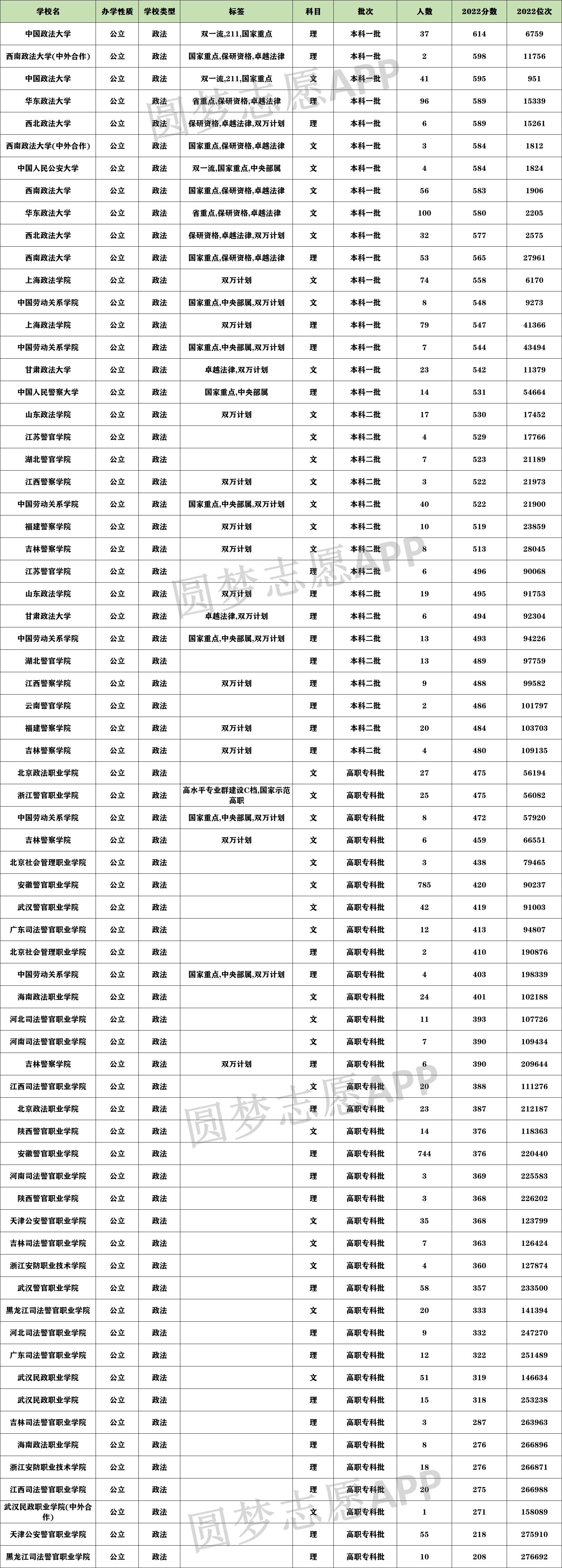 政法大学排名及分数线前十名公布,中国政法大学、西南政法、华东政法等学校上榜。2023年学法律考哪个大学比较好?本期就为大家整理中国最好的法律大学,并附上2022年文理科分数线数据,供2023年考生参考。