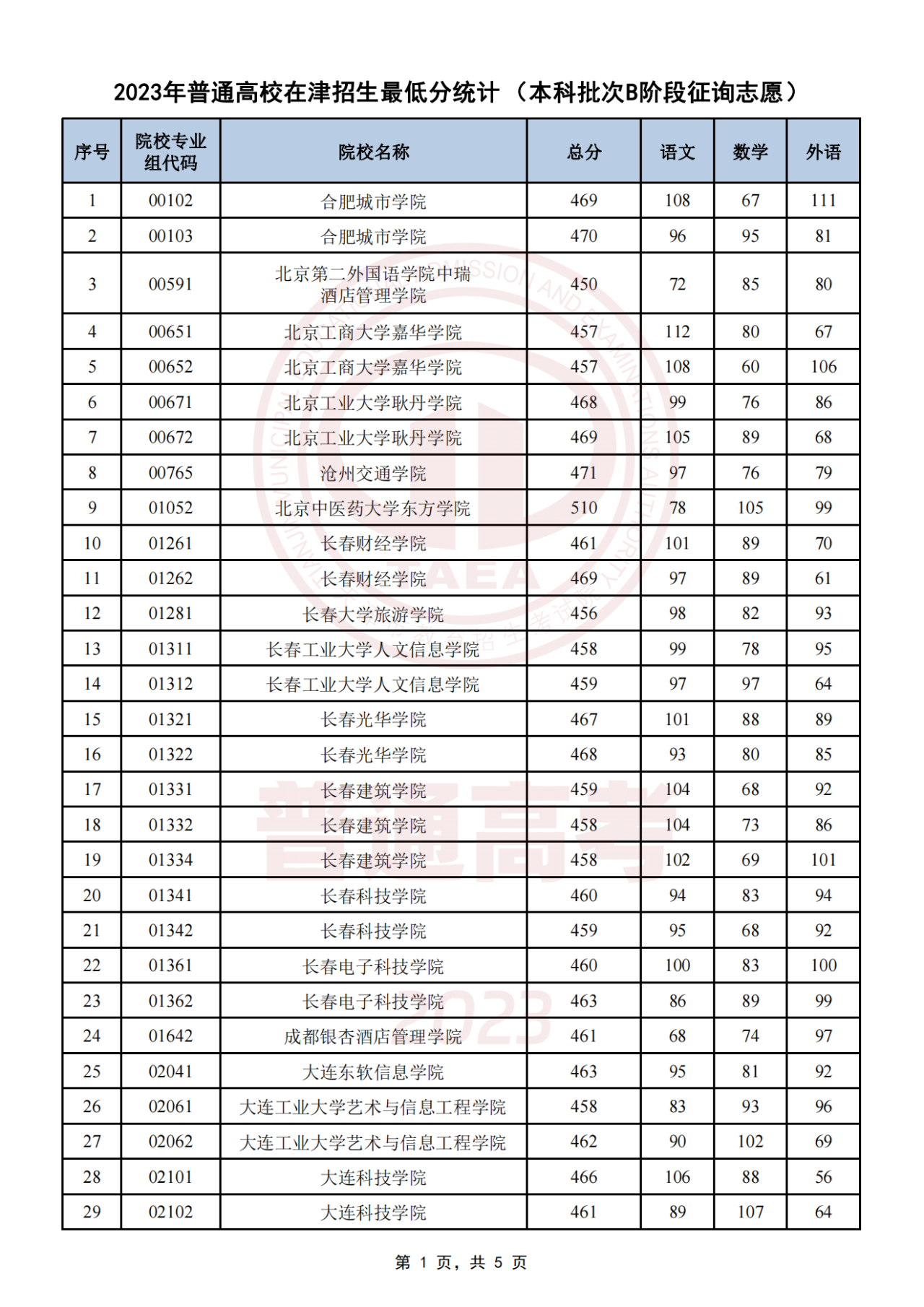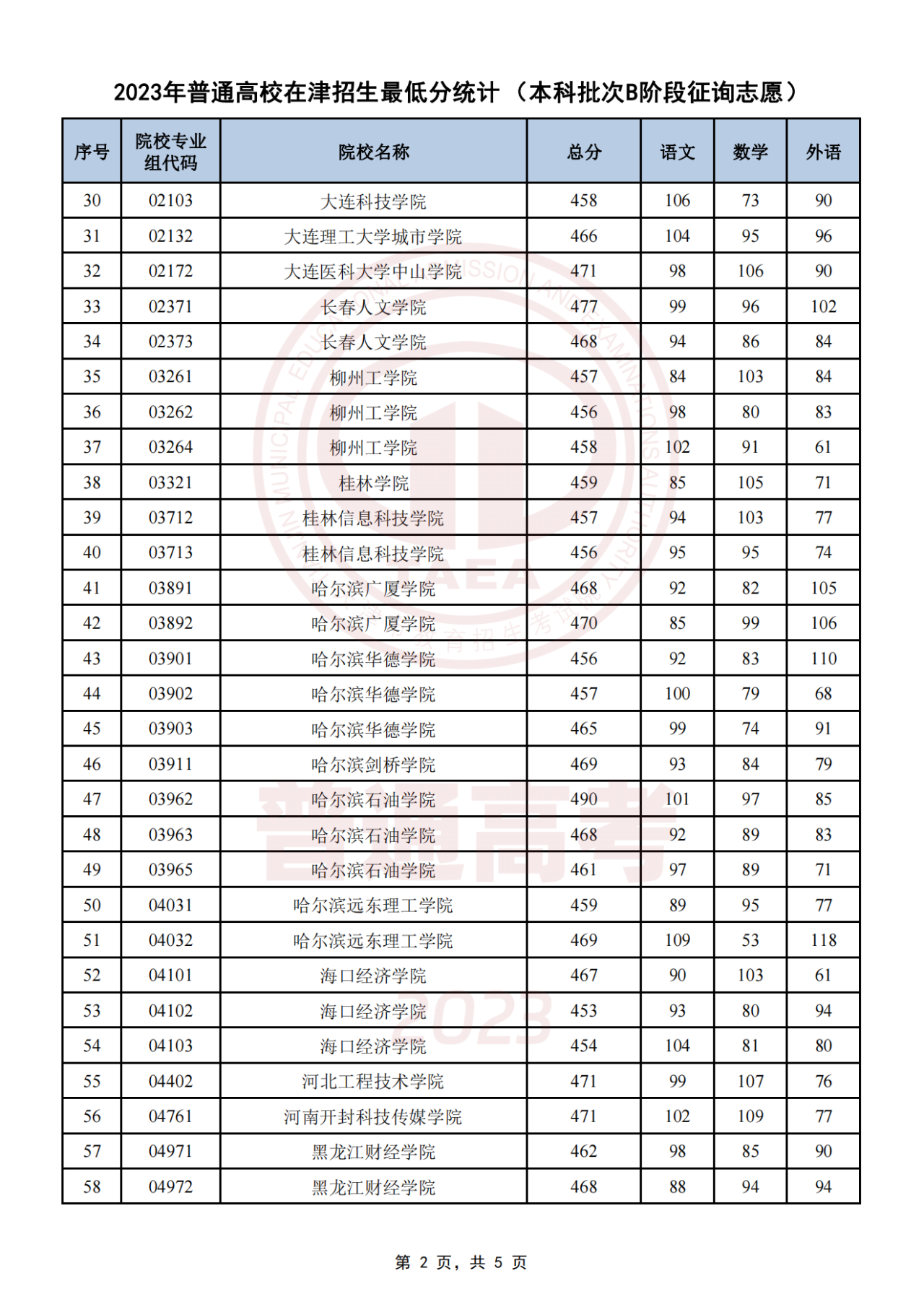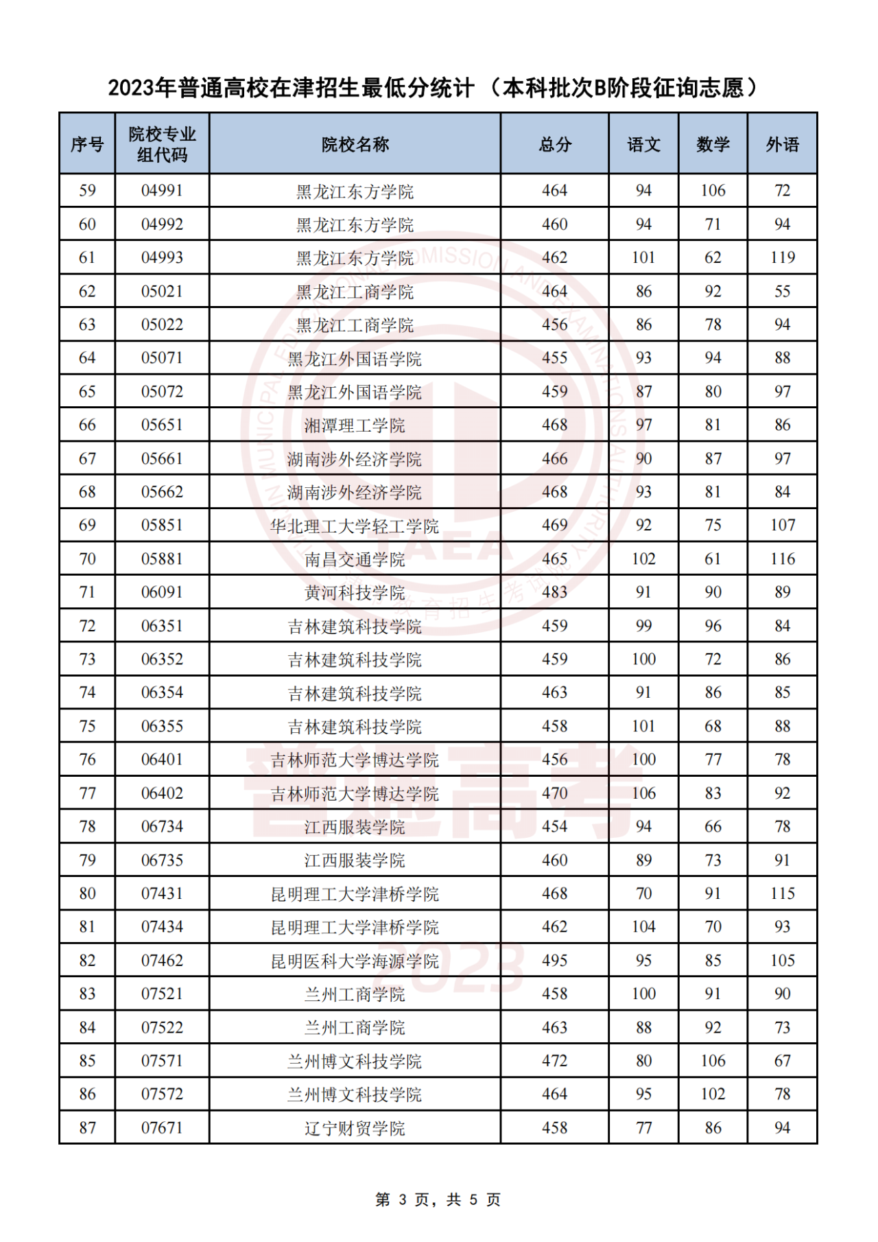天津本科批次B阶段征集志愿全国学校名单及分数线如下图