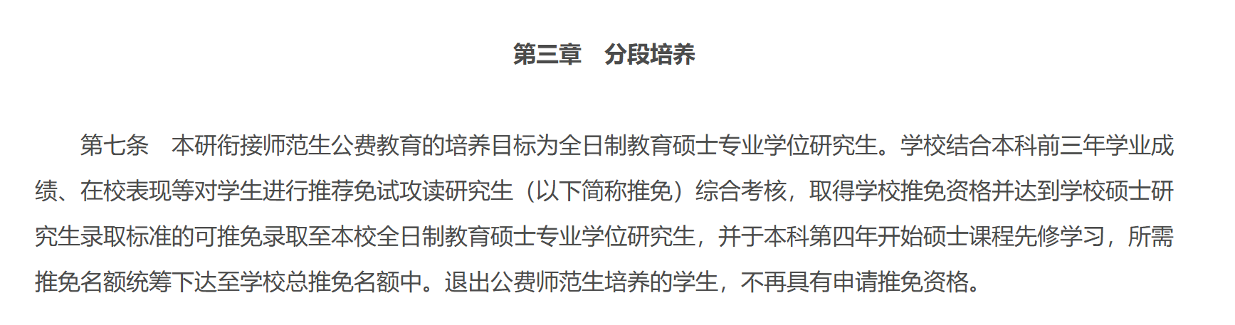 根据教育部最新的公费师范生政策,报考以下六所大学的考生可以免试继续读2年研究生。学校会根据成绩和平时表现来确定大家是否有资格被推免。具体考核标准还没有公布,但小编认为门槛不会设得特别高,同学们不必有太大的心理压力。