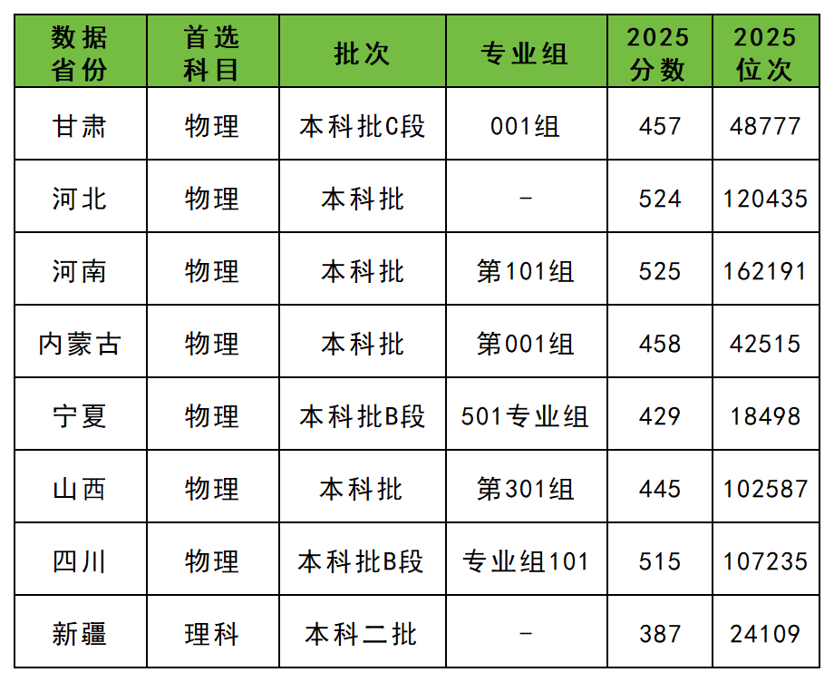2025年山西医药学院在各省的录取分数如下:
